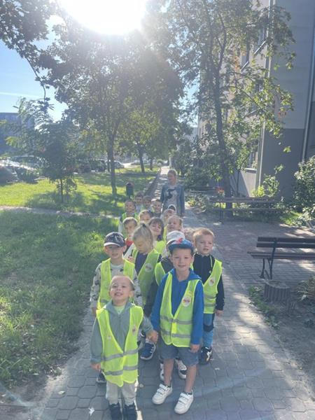 W ramach omawianej tematyki kompleksowej dotyczącej bezpieczeństwa na drogach grupa Motylki wybrała się na wycieczkę na pobliskie skrzyżowanie. Celem wycieczki było przypomnienie sobie zasad ruchu drogowego, jak również zaobserwowanie zachowania się pieszych i kierowców. Dzieci z uwagą obserwowały ruch uliczny, nazywały pojazdy, poznały wybrane znaki drogowe oraz nauczyły się właściwego sposobu przechodzenia przez jezdnię.
