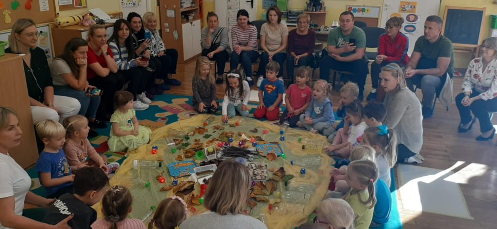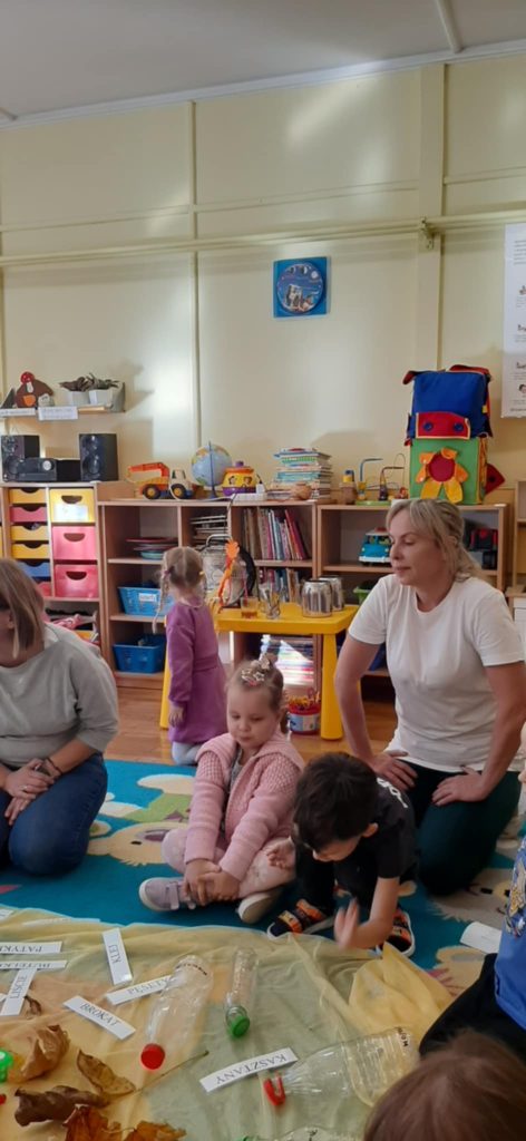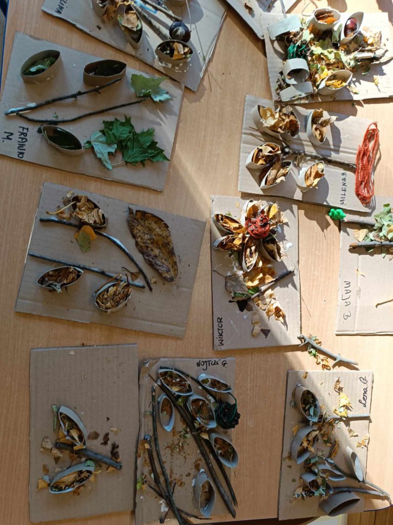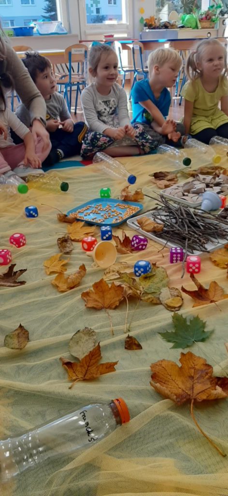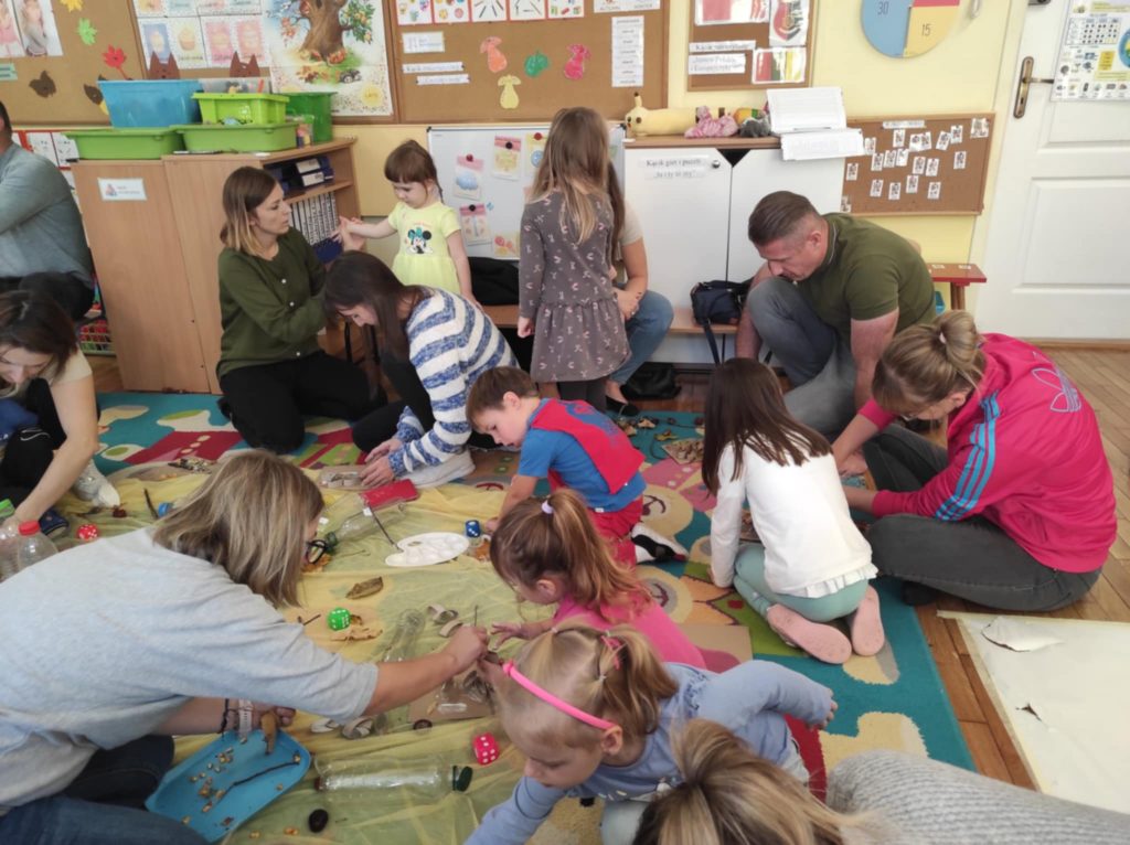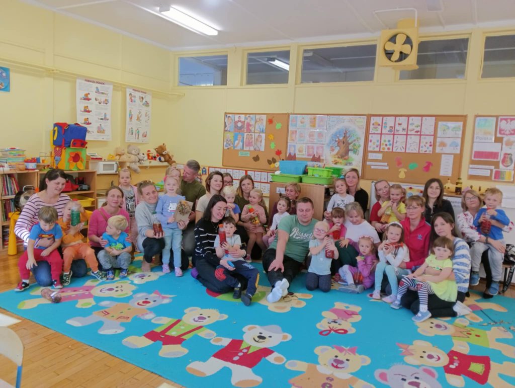 17.10.2024 r. przedszkolaki z grupy „Misie“ wzięły udział w zajęciach warsztatowych z udziałem swoich najbliższych, Rodziców i Babć. Podczas zajęć o tematyce „Sensoryczna Jesień“ „Misie“ dowiedziały się, że jesień symbolizuje żółty kolor, smak miodu, zapach lawendy, a żywiołem jest wiatr. Nasze 4-latki mogły poćwiczyć cięcie, tnąc liście, usprawniały małą motorykę „ubierając“ szyszki w sweterki, rozwijały zmysł dotyku, smaku, wzroku, słuchu, węchu. „Misie“ wspólnie z rodzicami ćwiczyły liczenie, segregowanie, kategoryzowanie. Na koniec wykonały piękne kolorowe jesienne drzewka i jesienne butelki sensoryczne. Wszystkie te działania służyły rozwojowi zmysłów, wspieraniu małej motoryki, umiejętności matematycznych, budowaniu więzi z bliskimi. Dziękujemy wszystkim Państwu za obecność i aktywny udział w zajęciach.