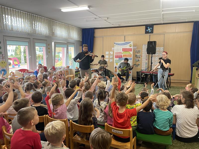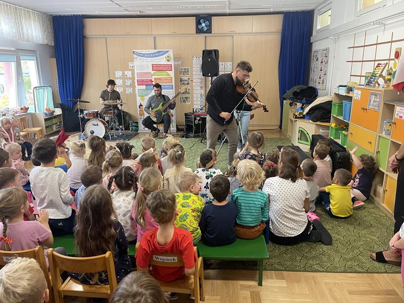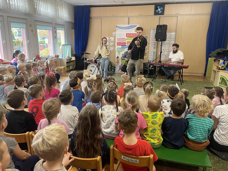 Nasze przedszkole odwiedzili muzycy z grupy „Jaszczur i Przyjaciele“, aby zabrać przedszkolaków w muzyczną, bajkową podróż. Koncert nosił tytuł „Piosenki z naszych bajek“. Dzieci miały okazję usłyszeć piosenki z popularnych bajek i filmów takich jak Akademia Pana Kleksa, Kaczka Dziwaczka, Vaiana, Gumisie, Król Lew i Herkules. Dziękujemy wykonawcom za świetną zabawę i bajkową podróż w czasie.