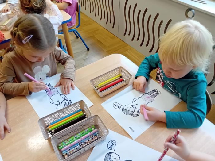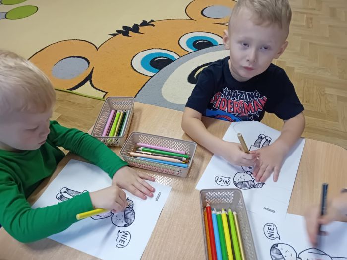 Udział w akcji „Dzieciństwo bez przemocy!” Przekazanie dzieciom wiedzy na temat zagrożeń oraz rozwijanie umiejętności ochrony w sytuacjach wystąpienia zagrożenia przemocą poprzez wzmocnienie w dziecku przekonania, że ma prawo czuć się bezpiecznie, podniesienie umiejętności identyfikacji sytuacji niebezpiecznych i zagrażających, przekazanie dziecku informacji o konieczności mówienia o zagrażającej sytuacji. Dzieci nauczyły się jak nazywać i rozpoznawać emocje, jak asertywnie mówić „nie” oraz bezpiecznych zasad zachowania w sytuacjach zagrożenia przemocą.