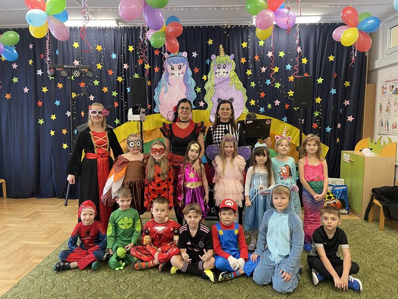 Bal karnawałowy dla przedszkolaków to dzień niezwykły, często długo wyczekiwany. Jest atrakcją bardzo lubianą przez dzieci, dostarczającą wielu przeżyć i radości. Tak też było u nas. Dzieci przebrały się w różne kolorowe postacie, bohaterów z bajek i filmów, mogliśmy spotkać księżniczki, wróżki, rycerzy, strażaków, policjantów i wiele innych. Wystrój sali wprowadził w radosny nastrój oraz zachęcał wszystkich do wesołej zabawy. Przedszkolaki świetnie się bawiły w rytm muzyki, którą zapewnił nam DJ Kubuś. To był wyjątkowy dzień.