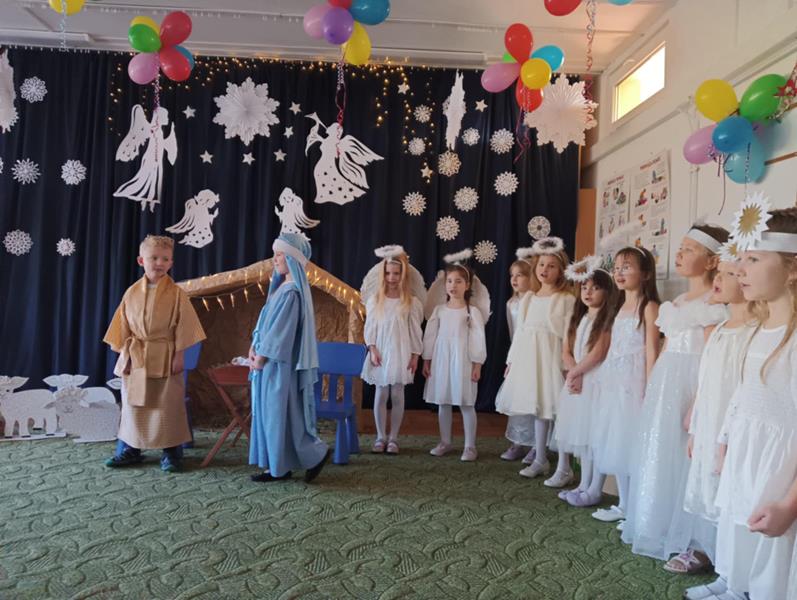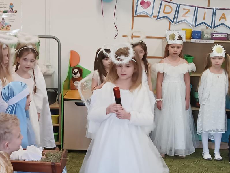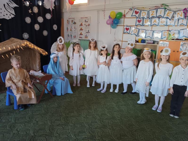 28.01.2025 r. w grupie ,,Zajączki” odbyła się uroczystość z okazji Dnia Babci i Dziadka, podczas której przedszkolaki zaprezentowały swoim Kochanym Babciom i Dziadziom przedstawienie Jasełkowe oraz wiersze i piosenki okolicznościowe, związane ze Świętem Babci i Dziadzia. Uśmiechy na twarzach babć i dziadków, którzy tłumnie przybyli do naszego przedszkola, były najlepszym dowodem na to, jak ważne było dla nich to spotkanie. Wzruszeni i dumni ze swoich wnucząt, mogli cieszyć się chwilami spędzonymi razem, w magicznej atmosferze jasełek. Na zakończenie uroczystości przedszkolaki wręczyły swoim babciom i dziadziom własnoręcznie wykonane upominki. Dzieci były szczęśliwe, że mogły zaprezentować swoje umiejętności wokalne, recytatorskie, taneczne, gry na instrumentach przed swoimi bliskimi, co uczyniło ten dzień jeszcze bardziej wyjątkowym. Takie chwile umacniają więzi rodzinne i sprawiają, że każdy czuje się częścią naszej przedszkolnej społeczności.