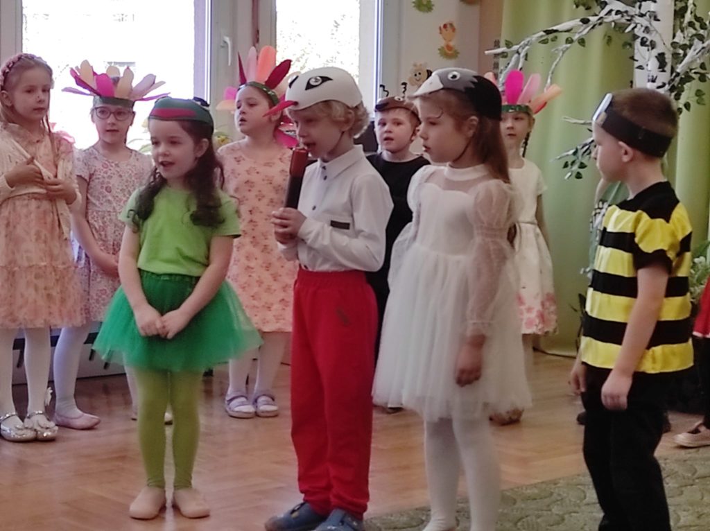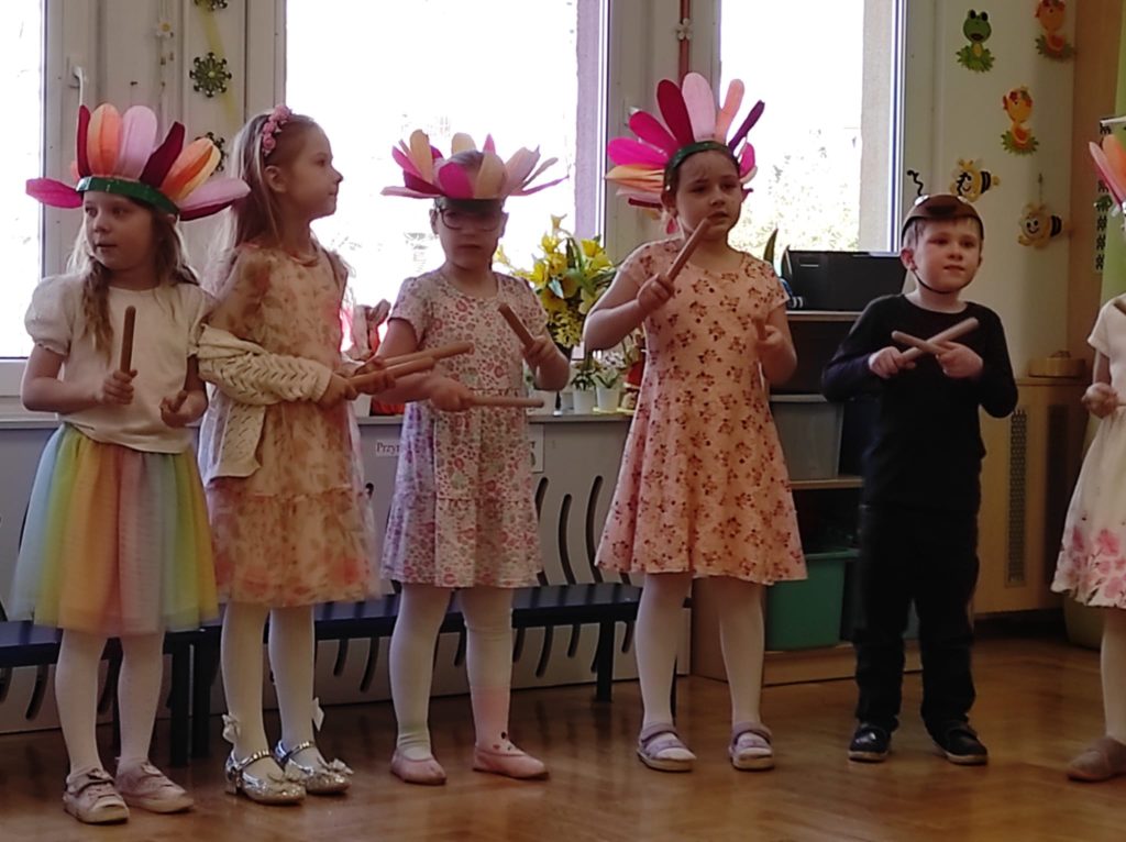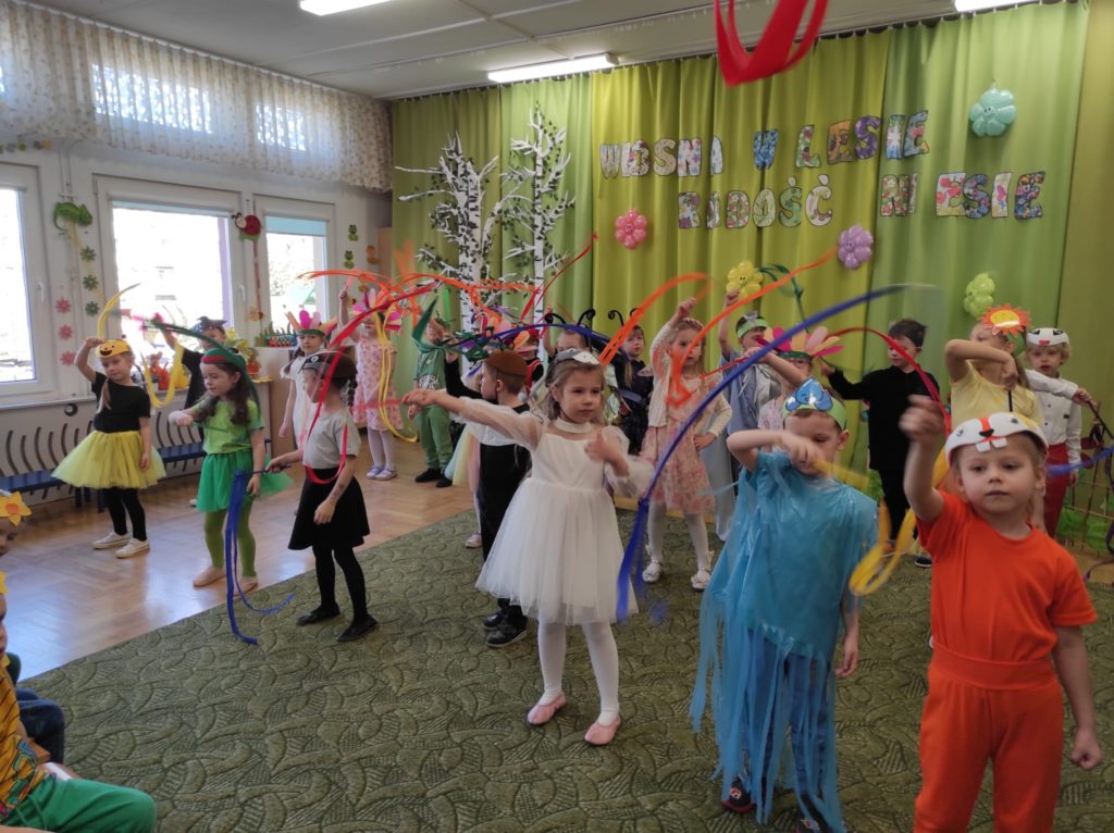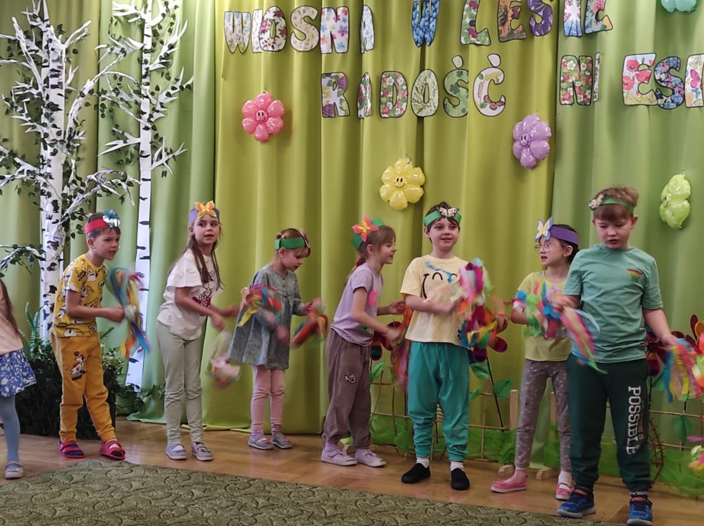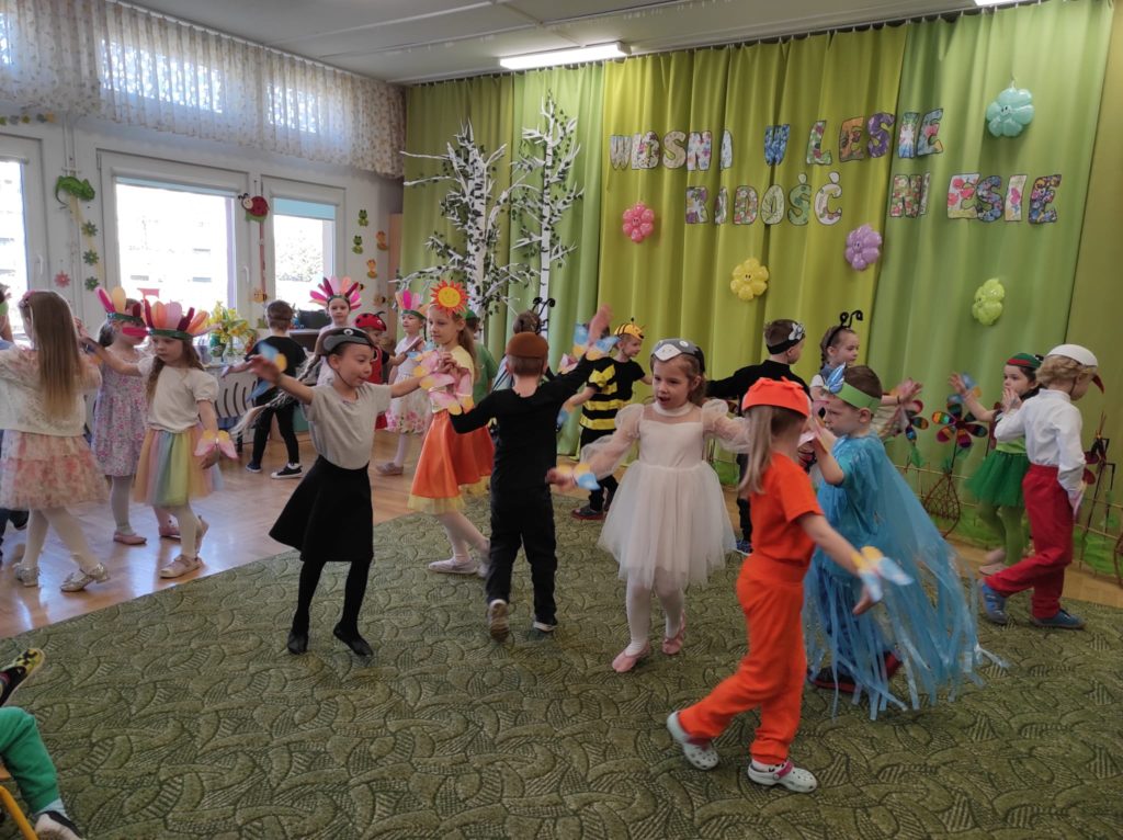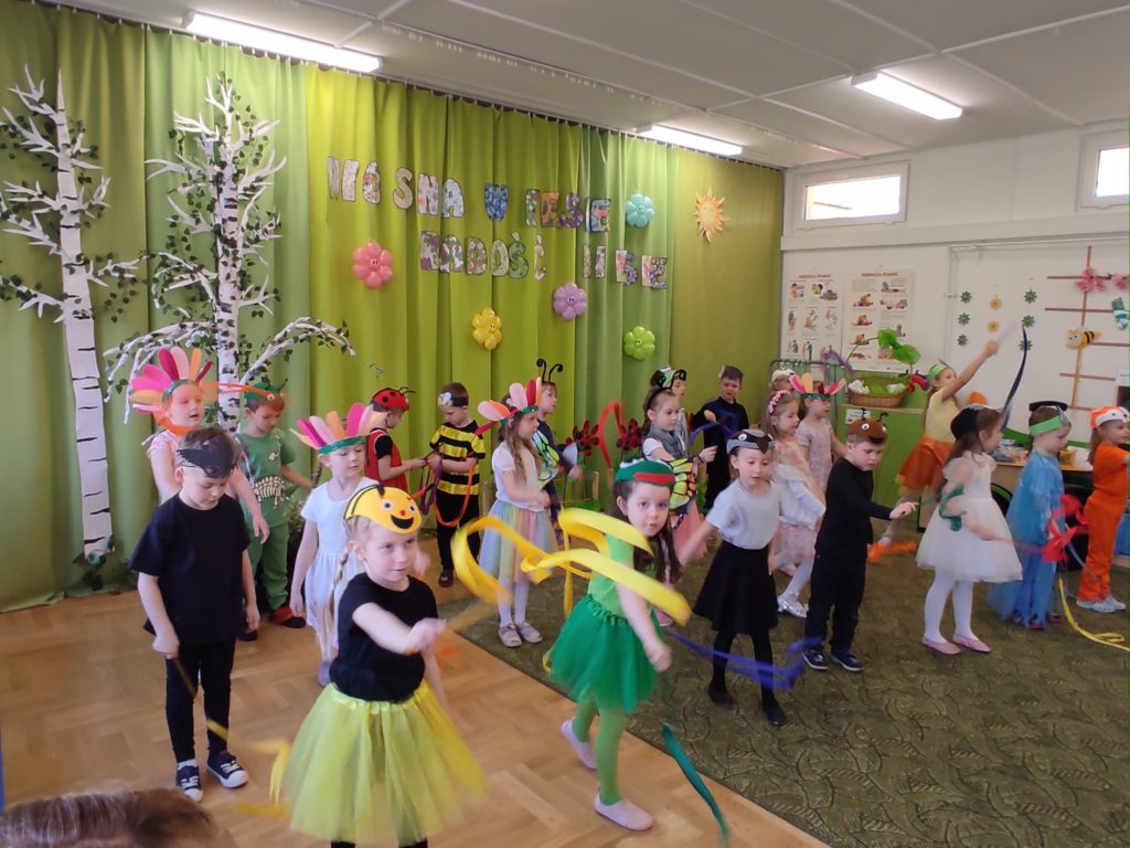 W dniu 21.03.2025r. w naszym przedszkolu odbyło się przedstawienie z okazji pierwszego Dnia Wiosny które, przygotowała grupa BIEDRONKI. Przewodnim hasłem przedstawienia łączącym pierwszy Dzień Wiosny z obchodami Międzynarodowego Dnia Lasu było: „ Wiosna w lesie radość niesie“. Grupa Biedronki pięknie wyrecytowała swoje role, a piosenki i układy taneczne dodały całości niepowtarzalnej atmosfery i wyczekiwanej radości z pojawienia się Wiosny. Następnie każda grupa zaprezentowała swoja piosenkę, a po zakończonych występach każda grupa otrzymała specjalną kartę: „Poszukiwacz Pierwszych Oznak Wiosny“. I tak oto w miłej atmosferze każda grupa wyruszyła na poszukiwania, które okazały się fajną, ciekawą zabawą i piękną lekcją przyrody.