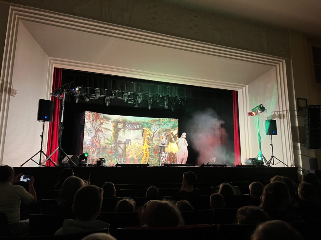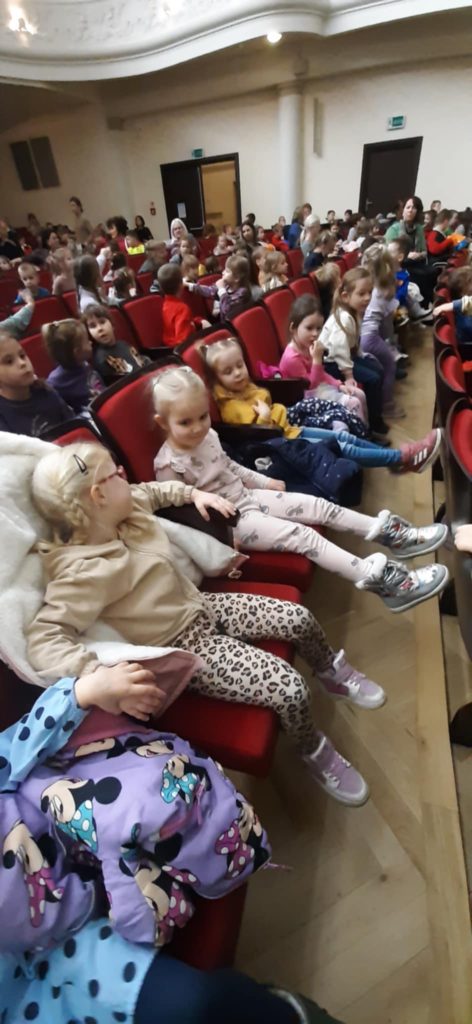 W dniu 18.03.2025r. grupy „Krasnale“, „Misie“, „Biedronki“ i „Motyle“ uczestniczyły w wycieczce autokarowej do Miejskiego Domu Kultury w Stalowej Woli. Dzieci obejrzały spektakl pt. „Safari“ w wykonaniu aktorów Teatru Polskiego Kultura z Łodzi. Nasi wychowankowie mieli okazję wyruszyć na niezapomniane muzyczne Safari razem z uroczymi postaciami np. małpką Monią, hipopotamem Hipolitem, żyrafą Żanetą i zebrą Zuzą. Bohaterowie uczyli dzieci o sile przyjaźni i współpracy.  Była to podróż przez rytmiczną dżunglę dźwięków, gdzie edukacja spotykała się z rozrywką. Mali widzowie byli zachwyceni spektaklem pełnym kolorów, muzyki i efektów wizualnych. Dzięki pięknej scenografii mieli okazję przenieść się do świata dzikich zwierząt i egzotycznej przyrody, a zarazem przypomnieć sobie zasady ekologii. Sztuka ta poruszyła również temat segregacji śmieci, polskiej gościnności oraz bezpieczeństwa na drodze.