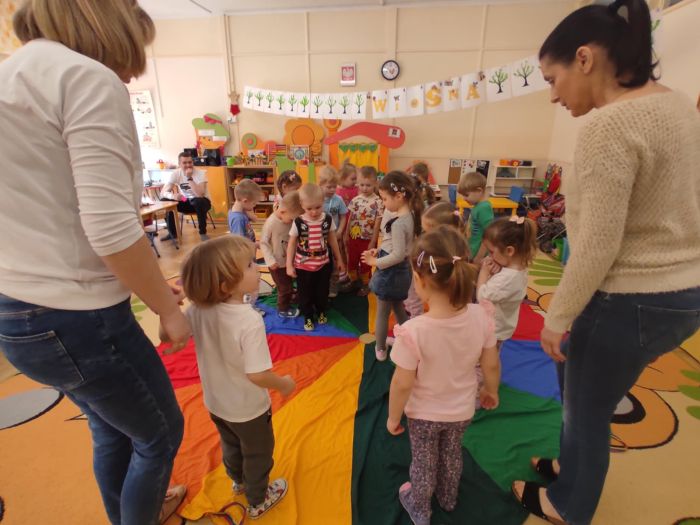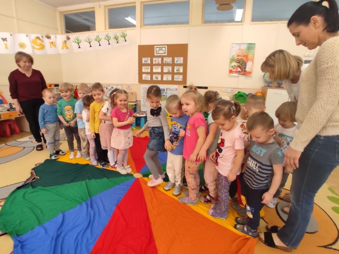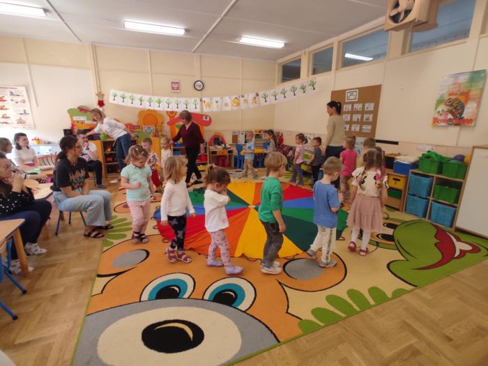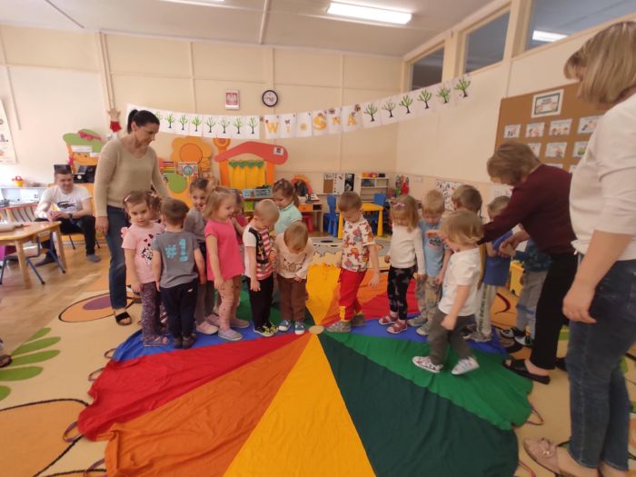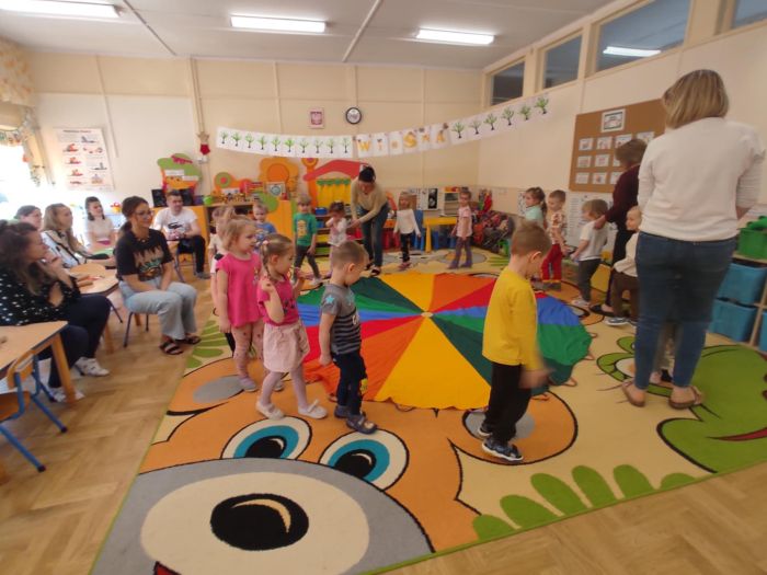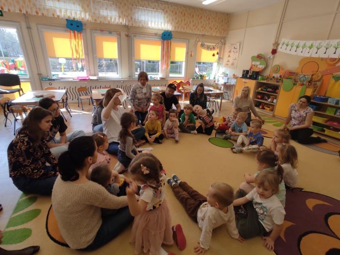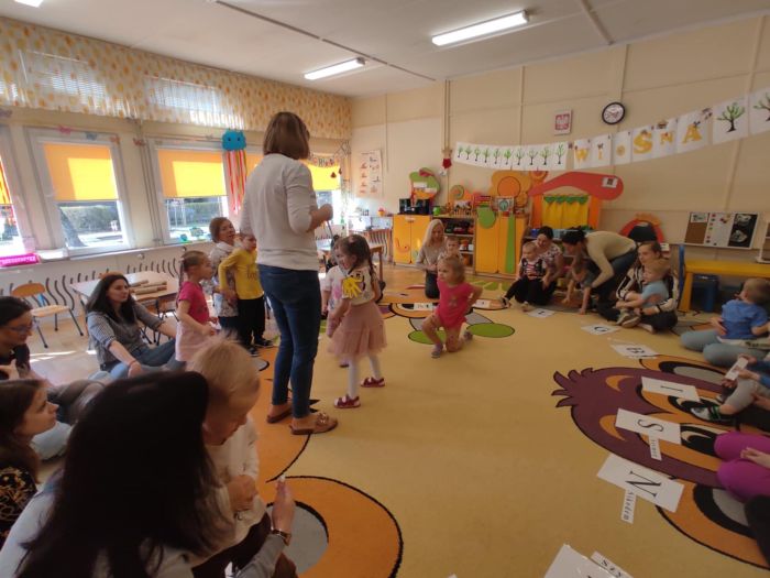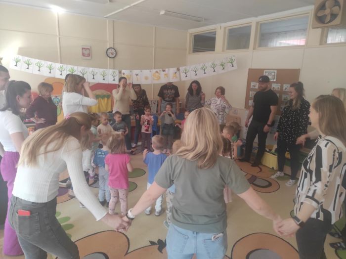 W środę 26.03.2025r., w grupie „Krasnale ” odbyło się zajęcie otwarte z udziałem rodziców. Zajęcia otwarte są jedną z form współpracy z rodzicami. Stanowią okazję do integracji środowiska przedszkolnego zarówno na linii rodzic – wychowawca, jak również integracji wszystkich rodziców dzieci z tej samej grupy przedszkolnej, a także wzmacniania więzi pomiędzy dzieckiem, a rodzicem. Dzieci od samego rana z wielką niecierpliwością oczekiwały wizyty bliskich. W czasie zajęć wspólnie z rodzicami i babciami uczestniczyły w zabawach przy muzyce, utrwalały swoją wiedzę na temat środowiska naturalnego – wiosenne przebudzenia zwierząt. Wykonały barwną pracę plastyczną – wiosenny narcyz. Zabawy i radości było mnóstwo, a najszczęśliwsze tego dnia były dzieci, które mogły z rodzicami i innymi bliskimi przyjemnie spędzić czas w przedszkolu.