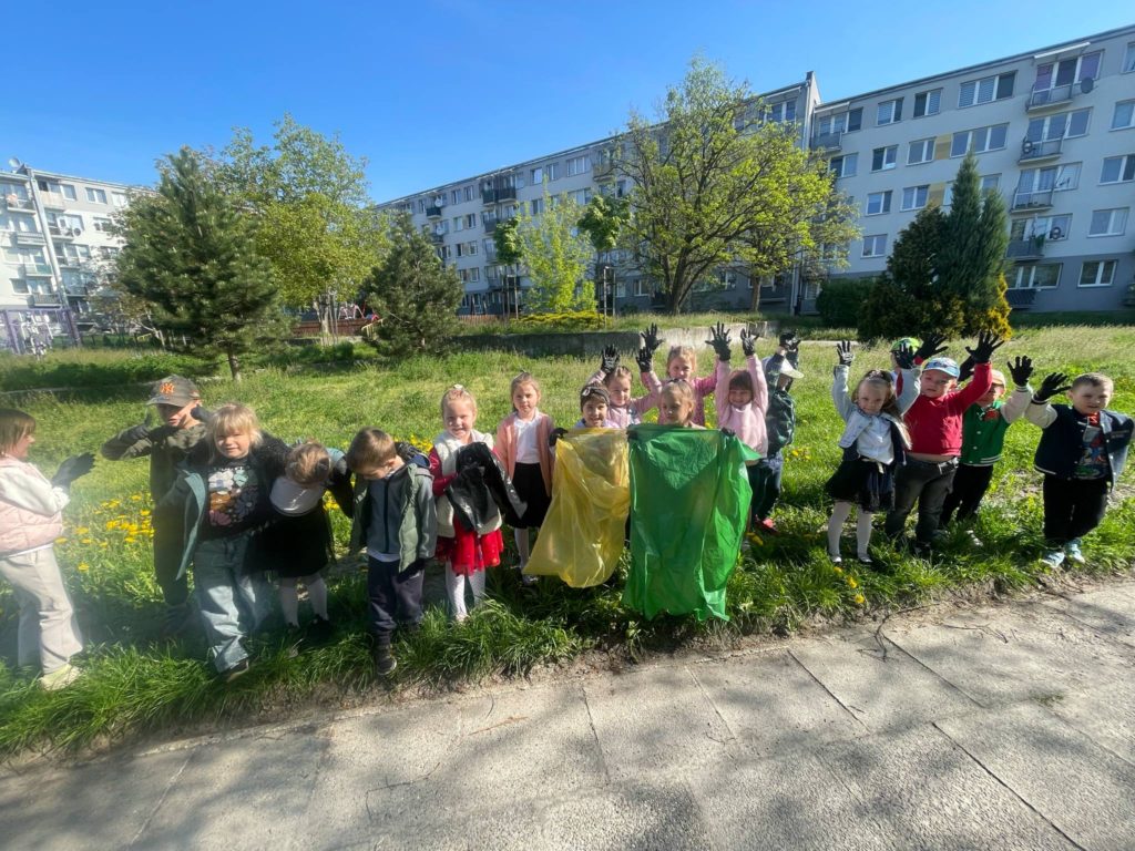 Dzieci, zaopatrzone w rękawiczki i worki na śmieci, wyruszyły na ulice miasta, by zadbać o czystość naszej najbliższej okolicy. Z wielkim entuzjazmem i zaangażowaniem zbierały odpady z trawników, chodników i skwerków. Przedszkolaki podeszły do zadania bardzo odpowiedzialnie – dokładnie i z troską o środowisko.