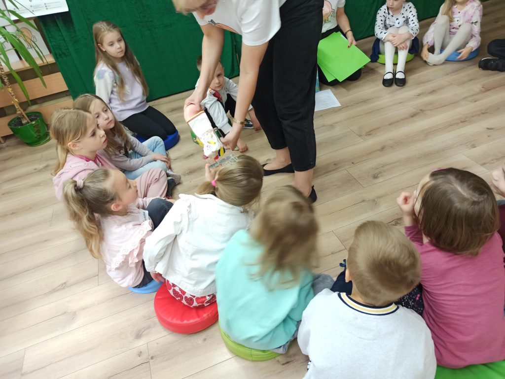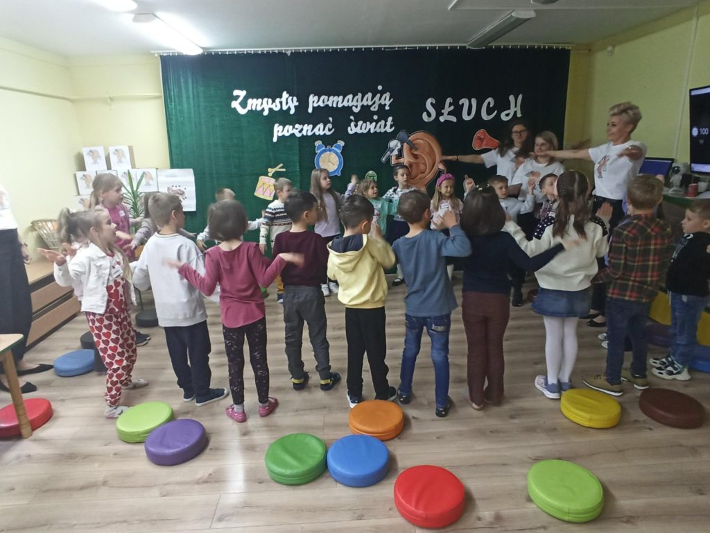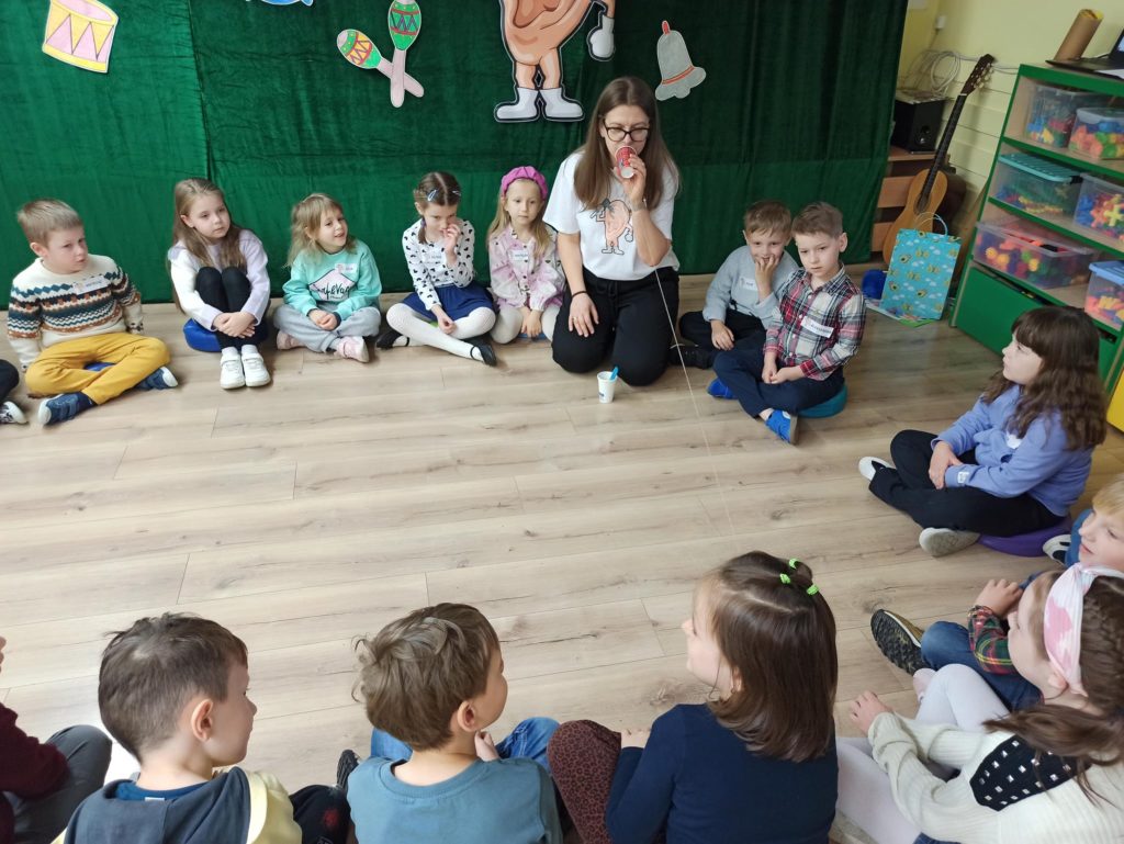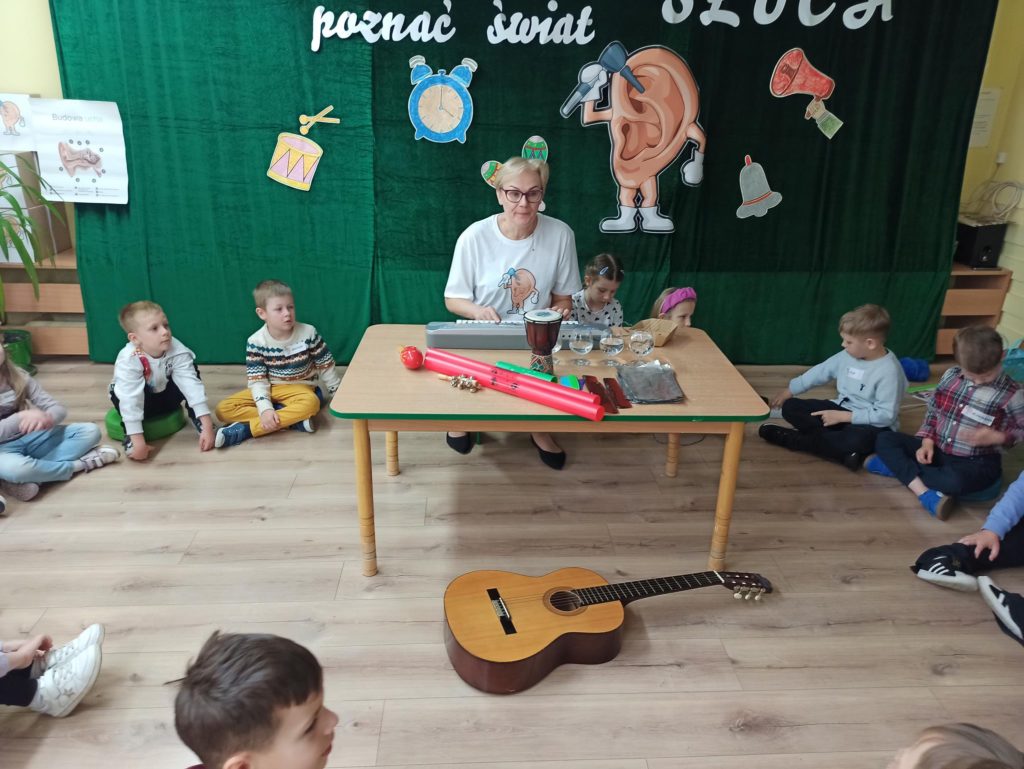 W maju dzieci z grupy „Biedronki“ udały się do Przedszkola nr. 9 i wzięły udział w warsztatach między przedszkolnych pt: „Zmysły pomagają poznać świat. Słuch.“ Dzieci zapoznały się z budową ucha oraz dowiedziały się jak bardzo jest nam on potrzebny , a także jak trzeba o niego dbać. Podczas warsztatów dzieci miały okazje min.: zobaczyć niezwykły teatr – bez słów, a z użyciem dźwięków, mogły zagrać na niecodziennych instrumentach, a także wykonać własne instrumenty. Warsztaty bardzo dzieciom się podobały.