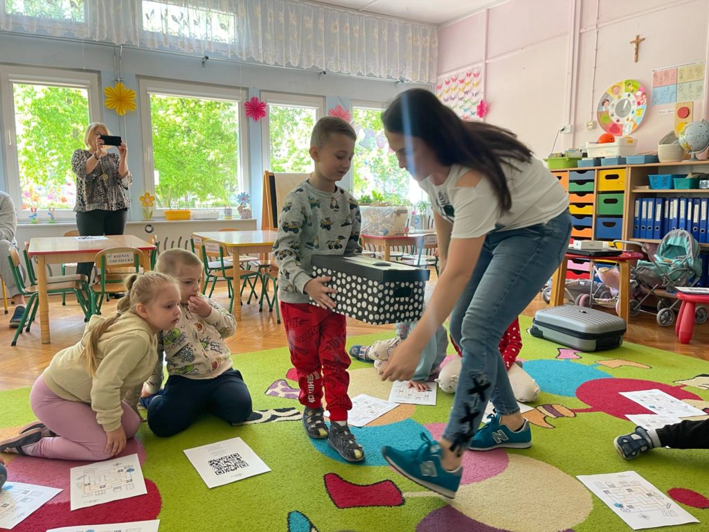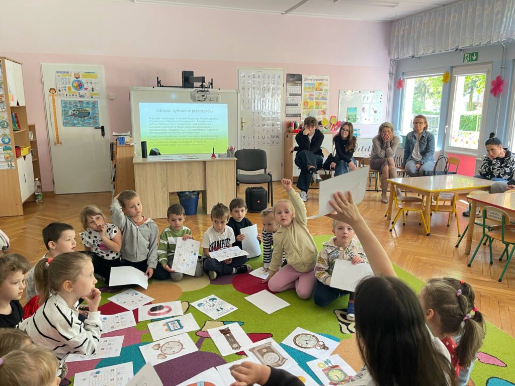 „Zdrowo-cyfrowo w przedszkolu” to program, którego celem jest rozwój kompetencji cyfrowych nauczycieli wychowania przedszkolnego oraz promowanie higieny cyfrowej w pracy z dziećmi i propagowanie bezpieczeństwa w sieci. Projekt pozwala nauczycielom zdobyć nowoczesne umiejętności, dzięki którym będą wspierać dzieci w odpowiedzialnym korzystaniu z technologii. Dzieci z grupy „Motylki“ wzięły udział w zajęciach pt. „„W poszukiwaniu zaginionych zasad korzystania z urządzeń cyfrowych” – Treasure Hunt“. Podczas zajęć zostały wykorzystane metody aktywizujące z elementami cyfrowymi podczas, które mogą być również użyte w edukacji domowej w asyście rodziców – praca metodą Webquestu z wykorzystaniem aplikacji Google Sites, zdrowo-cyfrowy Treasure Hunt z wykorzystaniem aplikacji Vocaroo.