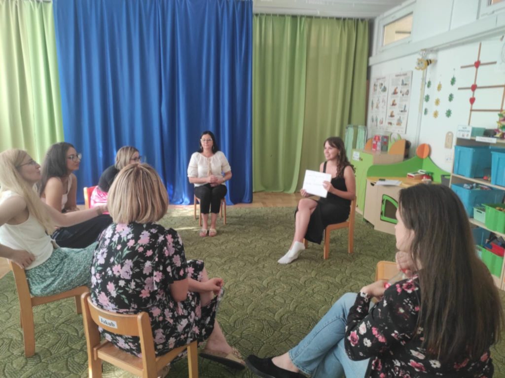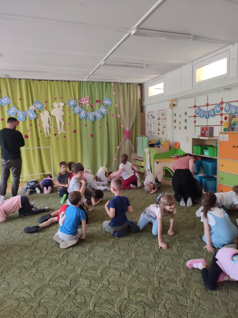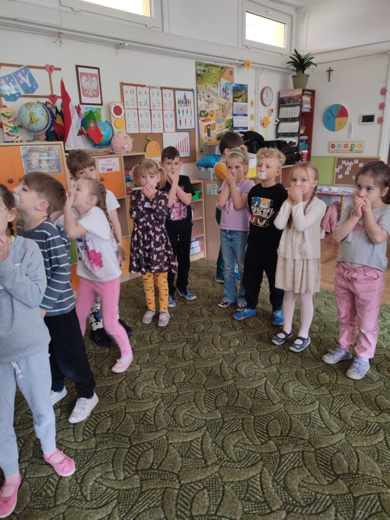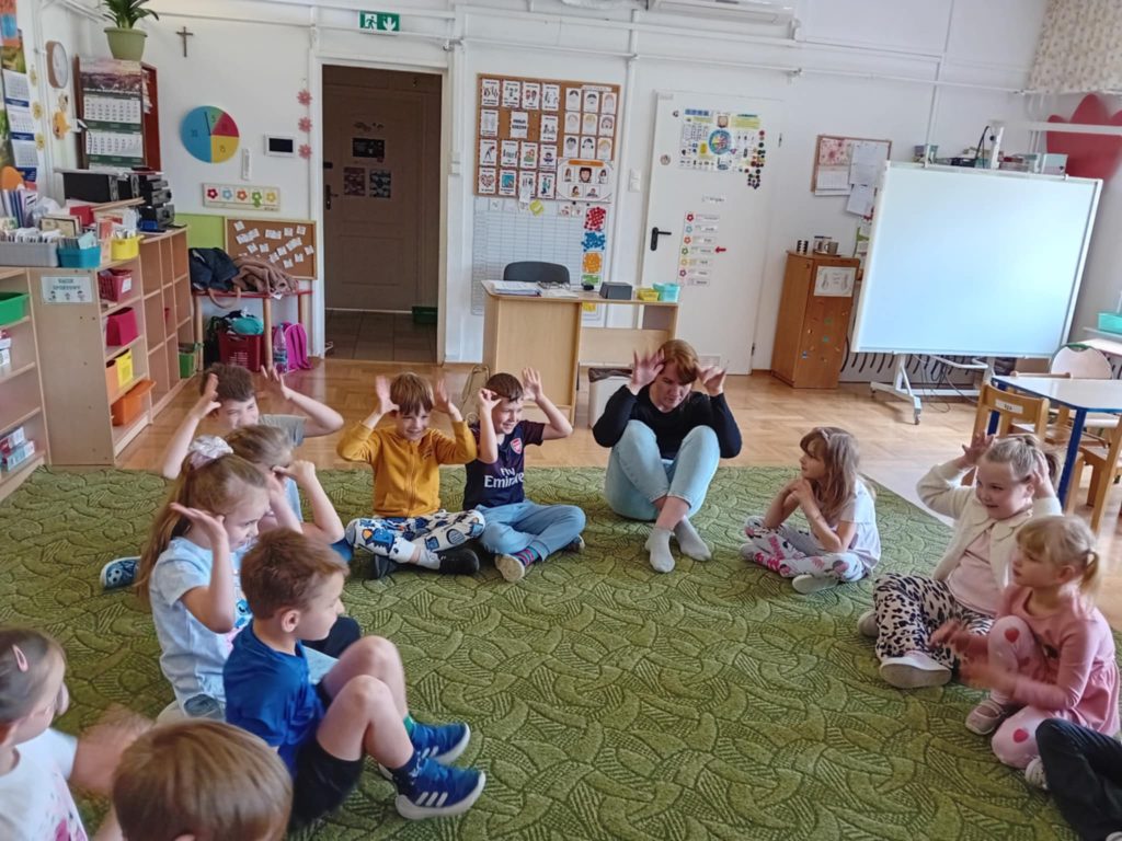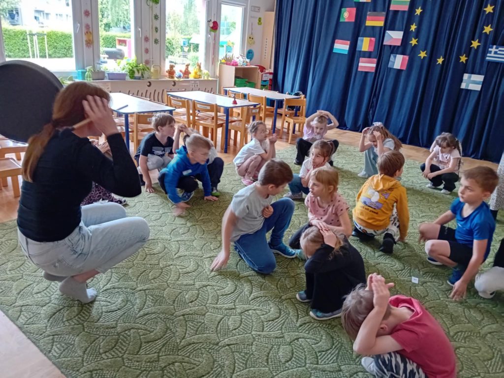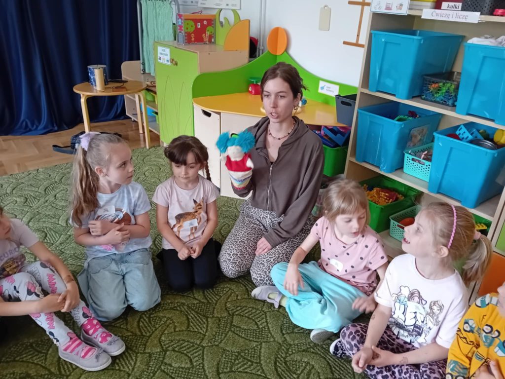 Dzieci z grupy ,,Zajączki” w roku szkolnym 2024/2025 brały udział programie ,,Poruszające Bajki o Emocjach” Program składał się z 10 warsztatów o emocjach, które były prowadzone przez wykwalifikowanych trenerów. Głównym celem programu było wspieranie rozwoju emocjonalno – społecznego poprzez bajki i metodę dramy, które uczyły dzieci jak rozpoznawać i nazywać swoje uczucia i innych, cierpliwości w czekaniu na swoją kolej, jak radzić sobie z trudnymi emocjami, tj. złość, strach, smutek, rozczarowanie, zazdrość oraz w jaki sposób pomagać rówieśnikom przeżywać trudne emocje. 05.06.2025 r. odbyło się również spotkanie trenerów z Rodzicami i nauczycielami w ramach programu Poruszające Bajki o Emocjach”, którzy mogli dowiedzieć się jak lepiej zrozumieć emocje swoich dzieci, jak skuteczniej budować relacje, jak stawiać granice i wprowadzać zasady w sposób zrozumiały dla dziecka.