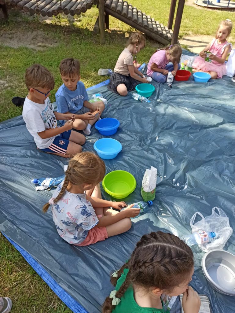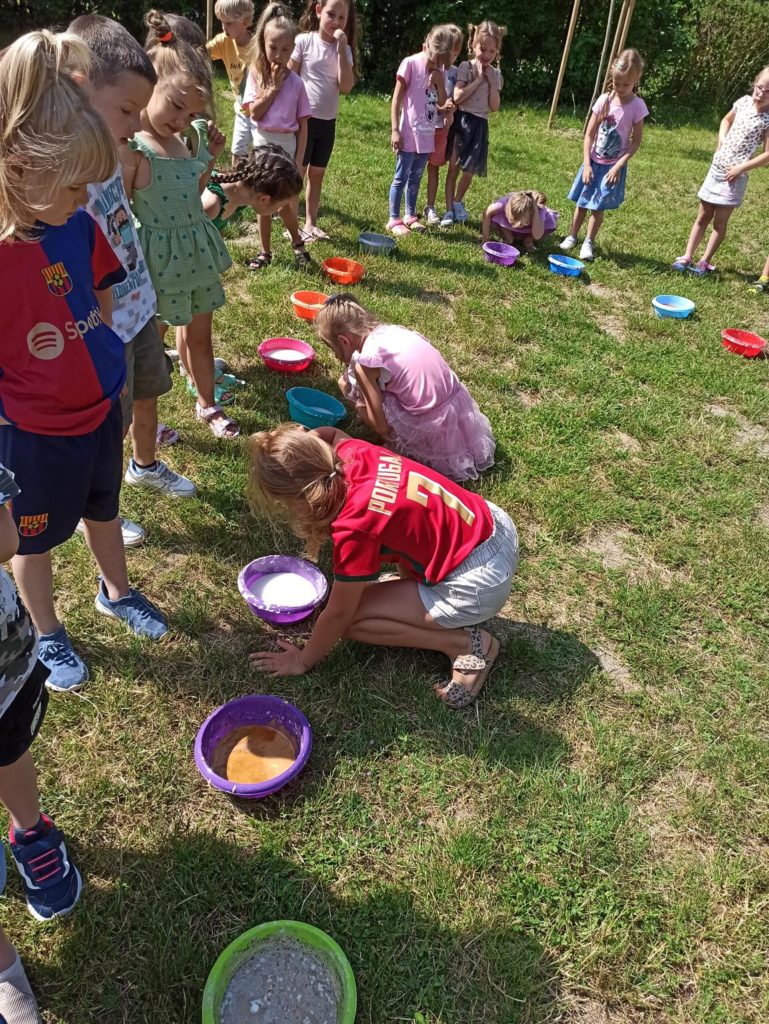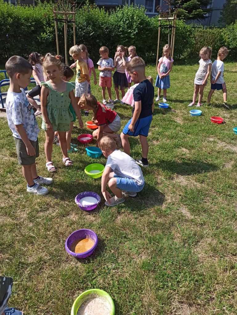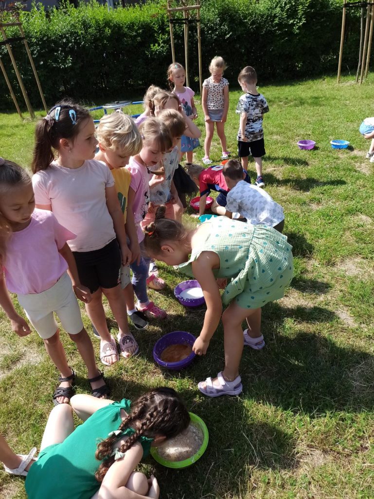 W ostatnie dni czerwca dzieci z grupy Biedronki wykorzystując piękną pogodę wzięły udział w zajęciach „ Sensoplastyka – zmysł węchu“. Zajęcia te mają na celu rozwój osobowości dzieci, usprawnienie ruchowe, usprawnienie manualne (a w tym doskonalenie precyzji dłoni, ćwiczenie mięśnie dłoni), rozwijanie świadomości własnego ciała, uspołecznianie, rozwój samodzielności i zwiększenie wiary we własne możliwości, rozwój mowy, rozwój świadomości przestrzeni i działania w niej oraz nauka dzielenia tej przestrzeni z innymi ludźmi. Na zajęciach dzieci nadpobudliwe uczą się wyciszać emocje, natomiast apatyczne rozbudzają się, mając motywację do działania – twórczego tworzenia. Biedronki były bardzo podekscytowane taką formą zajęć i bardzo chętnie przystąpiły do tworzenia, a w powietrzu zaczęły unosić się przepiękne zapachy olejków, przypraw i kawy. To były zajęcia które podobały się nam wszystkim i sprawiły wiele radości.