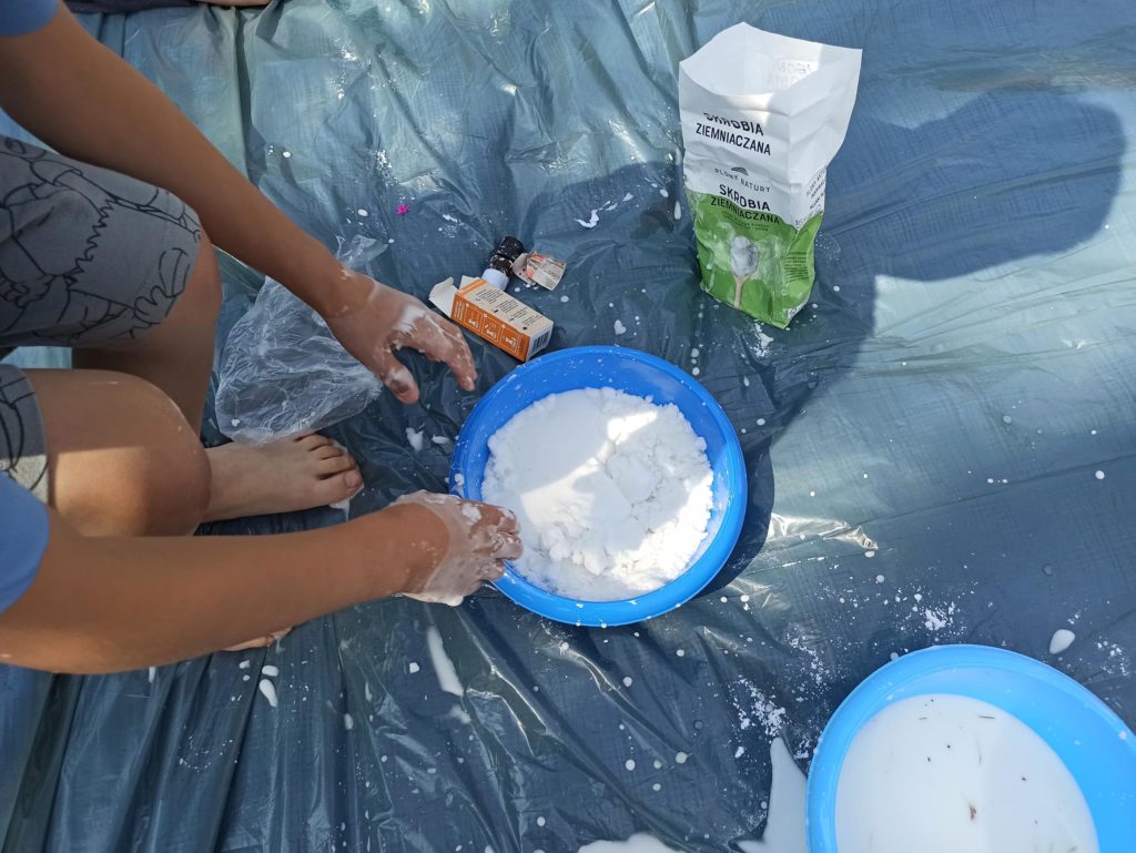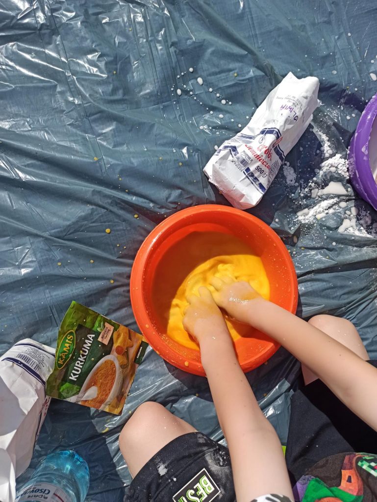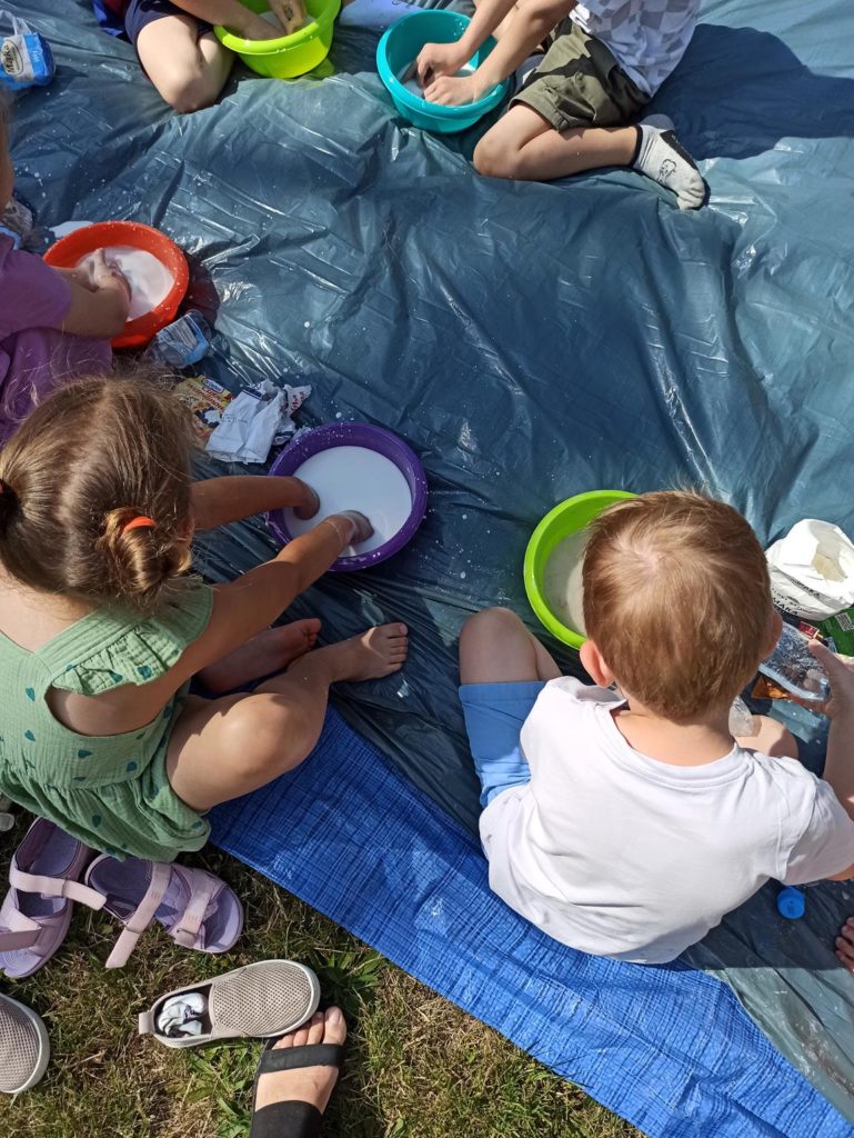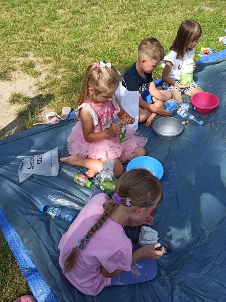 W ostatnie dni czerwca dzieci z grupy Biedronki wykorzystując piękną pogodę wzięły udział w zajęciach „ Sensoplastyka – zmysł węchu“. Zajęcia te mają na celu rozwój osobowości dzieci, usprawnienie ruchowe, usprawnienie manualne (a w tym doskonalenie precyzji dłoni, ćwiczenie mięśnie dłoni), rozwijanie świadomości własnego ciała, uspołecznianie, rozwój samodzielności i zwiększenie wiary we własne możliwości, rozwój mowy, rozwój świadomości przestrzeni i działania w niej oraz nauka dzielenia tej przestrzeni z innymi ludźmi. Na zajęciach dzieci nadpobudliwe uczą się wyciszać emocje, natomiast apatyczne rozbudzają się, mając motywację do działania – twórczego tworzenia. Biedronki były bardzo podekscytowane taką formą zajęć i bardzo chętnie przystąpiły do tworzenia, a w powietrzu zaczęły unosić się przepiękne zapachy olejków, przypraw i kawy. To były zajęcia które podobały się nam wszystkim i sprawiły wiele radości.