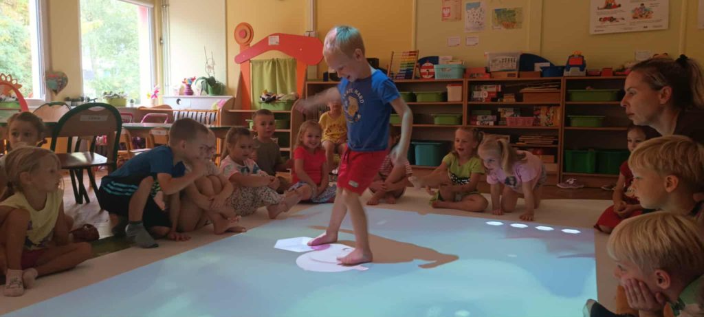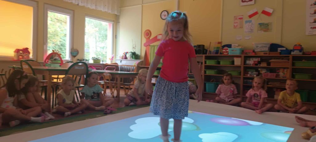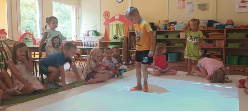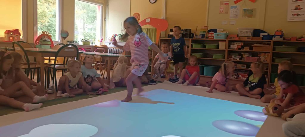 Dzieci z grupy „Biedronki” bawiły się na Magicznym Dywanie – interaktywnej macie, która łączy ruch z nauką i świetną zabawą!