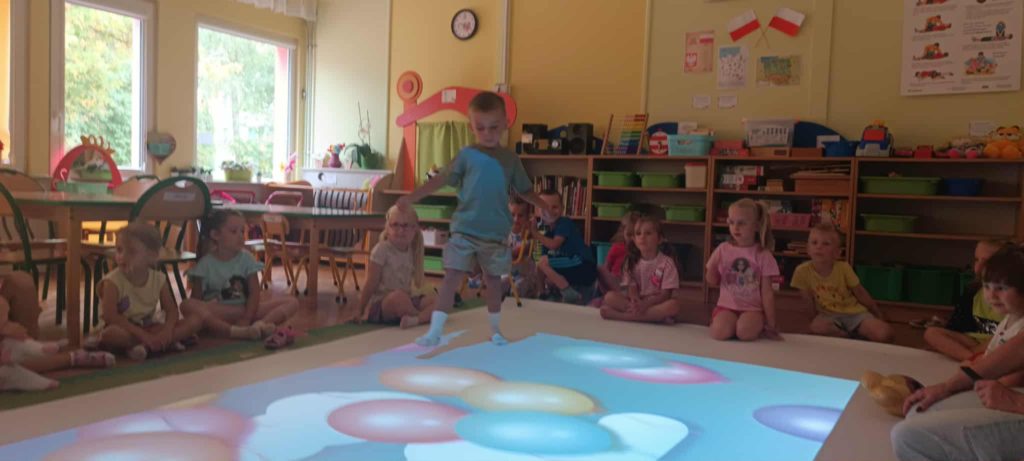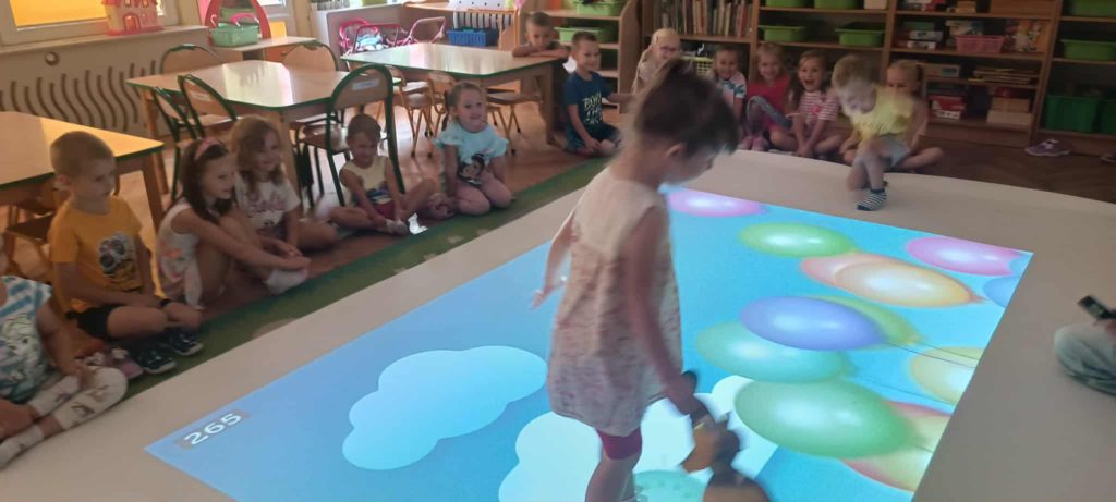 Dzieci skakały, liczyły, łapały wirtualne rybki, balony i rozwiązywały zadania, a wszystko to w kolorowej, radosnej atmosferze.