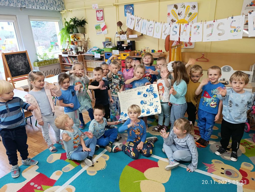 20 listopada obchodzimy Międzynarodowy Dzień Praw Dziecka – wyjątkowe święto, podczas którego zwracamy uwagę na to, że każde dziecko ma prawo do miłości, bezpieczeństwa, zabawy, nauki i wyrażania siebie. Tego dnia w całej placówce dominował kolor niebieski – symbol solidarności i jedności z dziećmi na całym świecie.