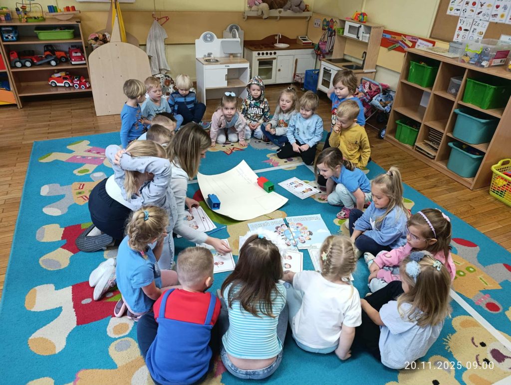 Od rana w grupach odbywały się zajęcia poświęcone prawom dziecka. Przedszkolaki oglądały krótkie filmy edukacyjne, rozmawiały o swoich uczuciach oraz brały udział w zabawach, które pokazywały, że każdy z nas jest ważny i wyjątkowy.