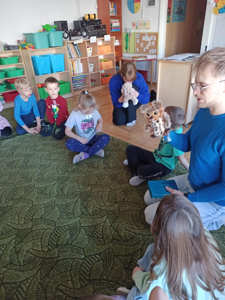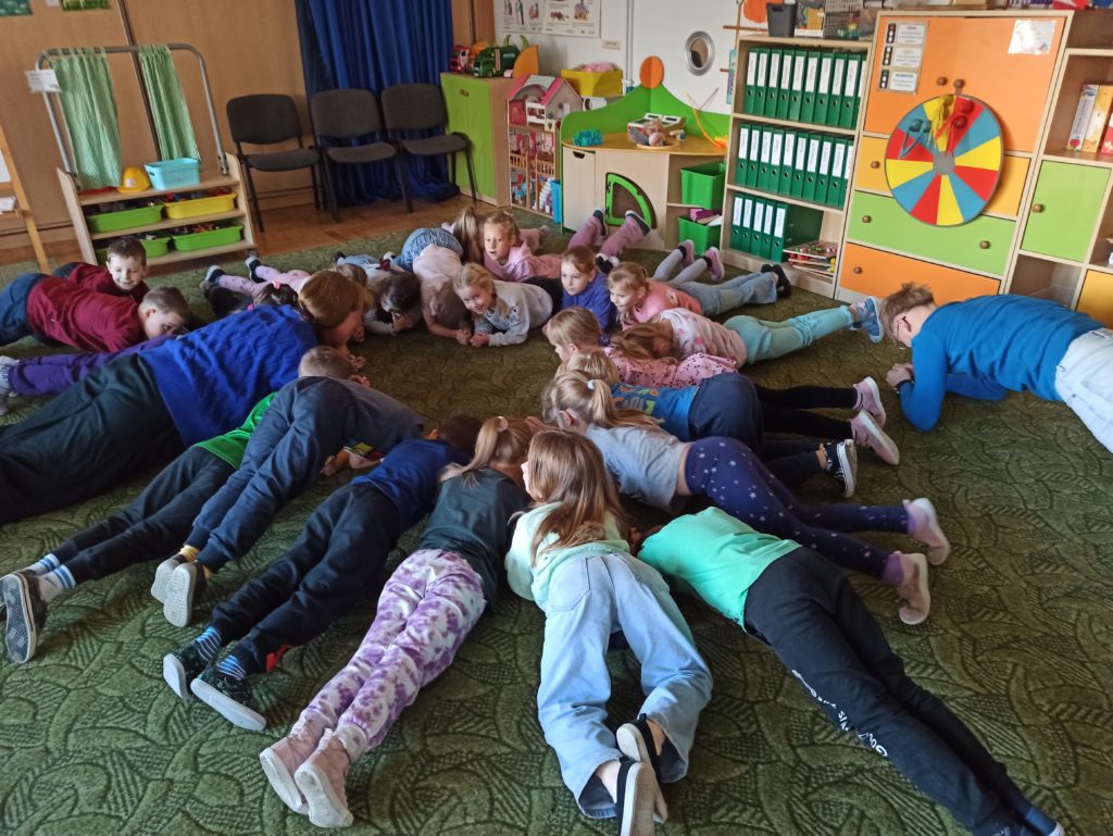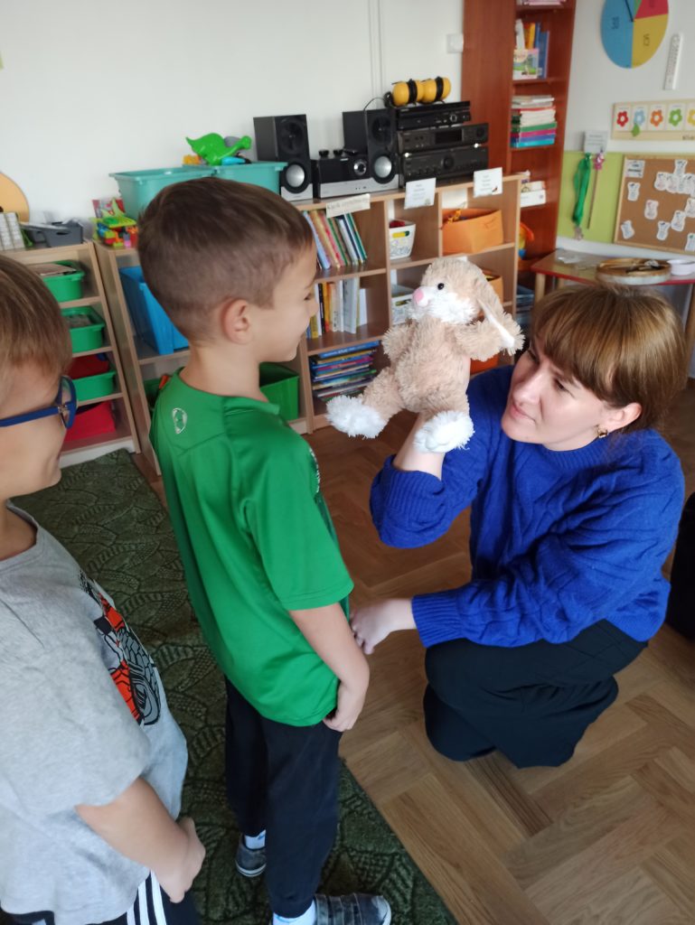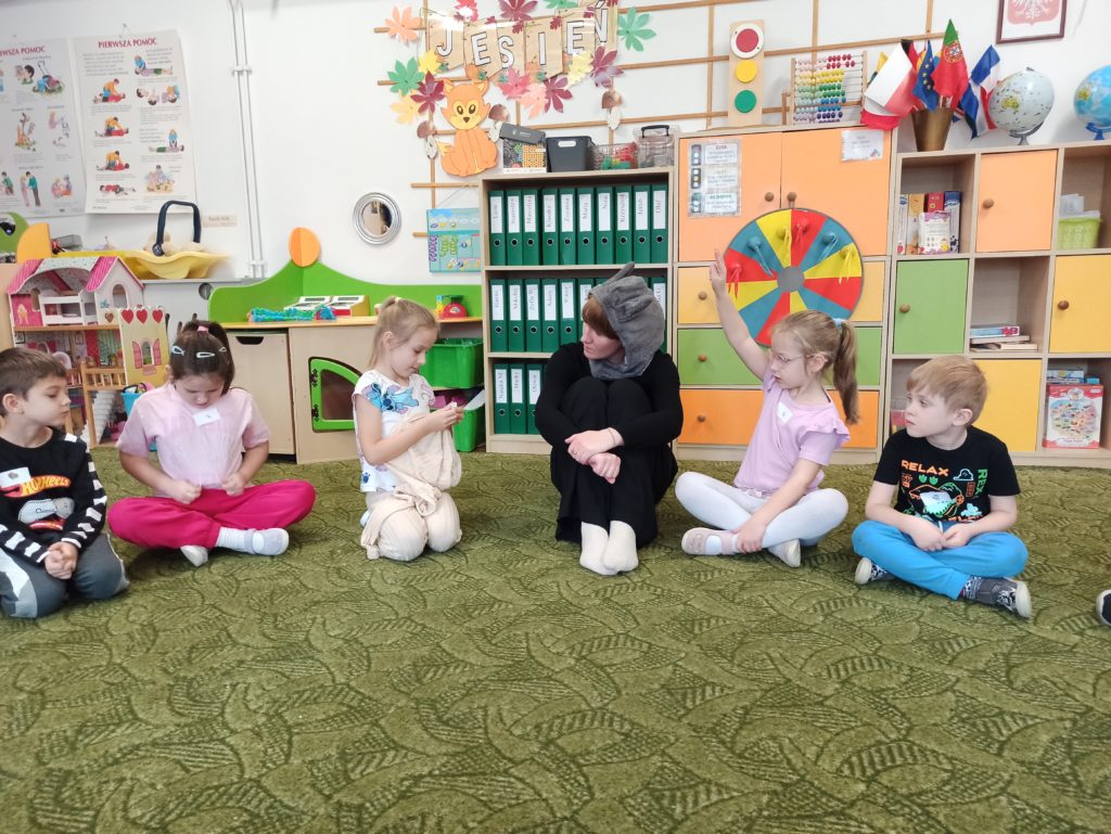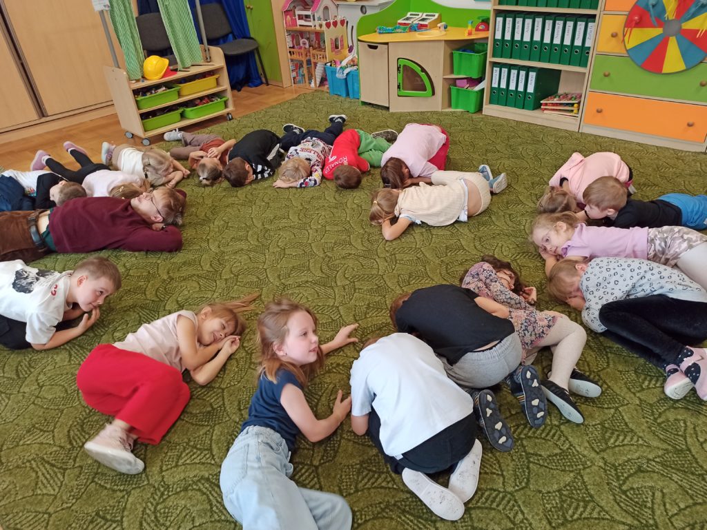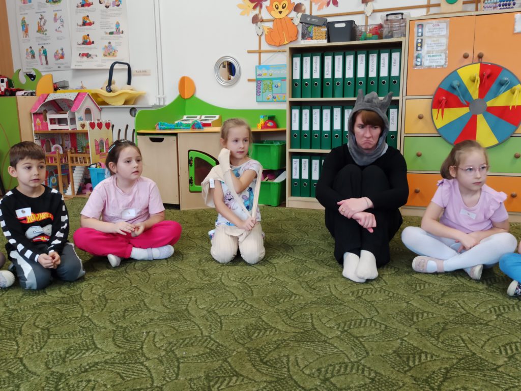 Od początku listopada dzieci z grupy „Zajączki” biorą udział w programie „Poruszające bajki o emocjach”. Jest to cykl 10 warsztatów o emocjach, począwszy od emocji podstawowych po emocje złożone, wtórne (społeczne). Zajęcia trwają od 45 do 60 minut dla grupy przedszkolnej. Każdorazowo prowadzone są przez dwie trenerki/dwóch trenerów na podstawie autorskich bajek i opracowanych scenariuszy zajęć. Dzieci zostają wciągnięte poprzez bajki w świat emocji, które uczą się rozpoznawać, a następnie jak sobie z nimi radzić.