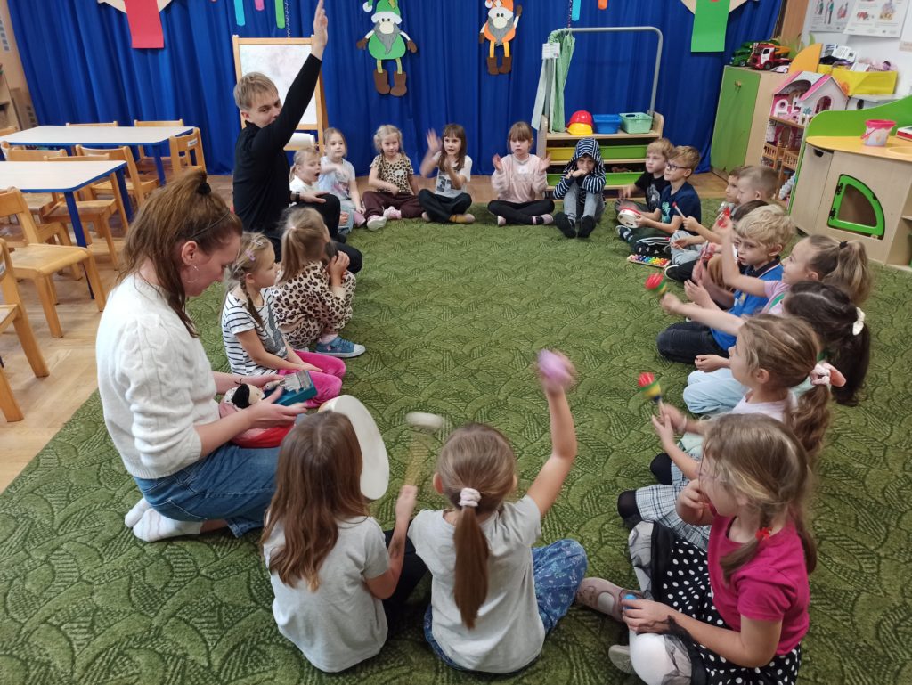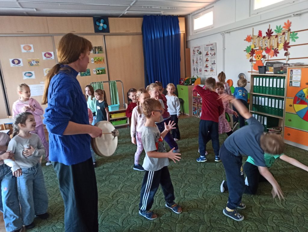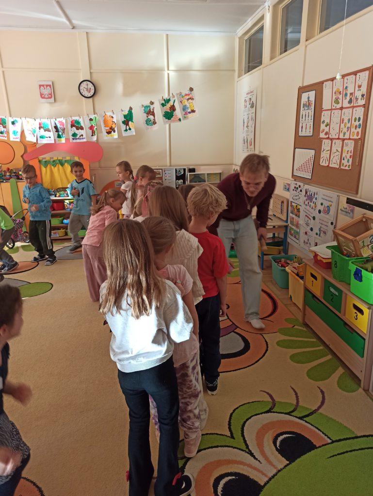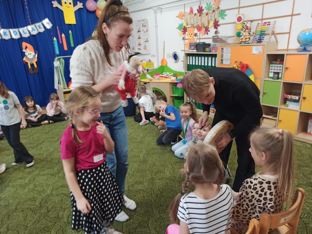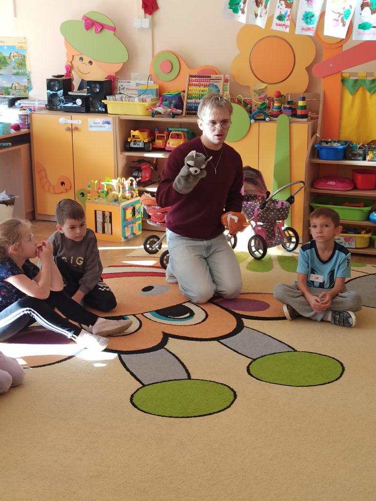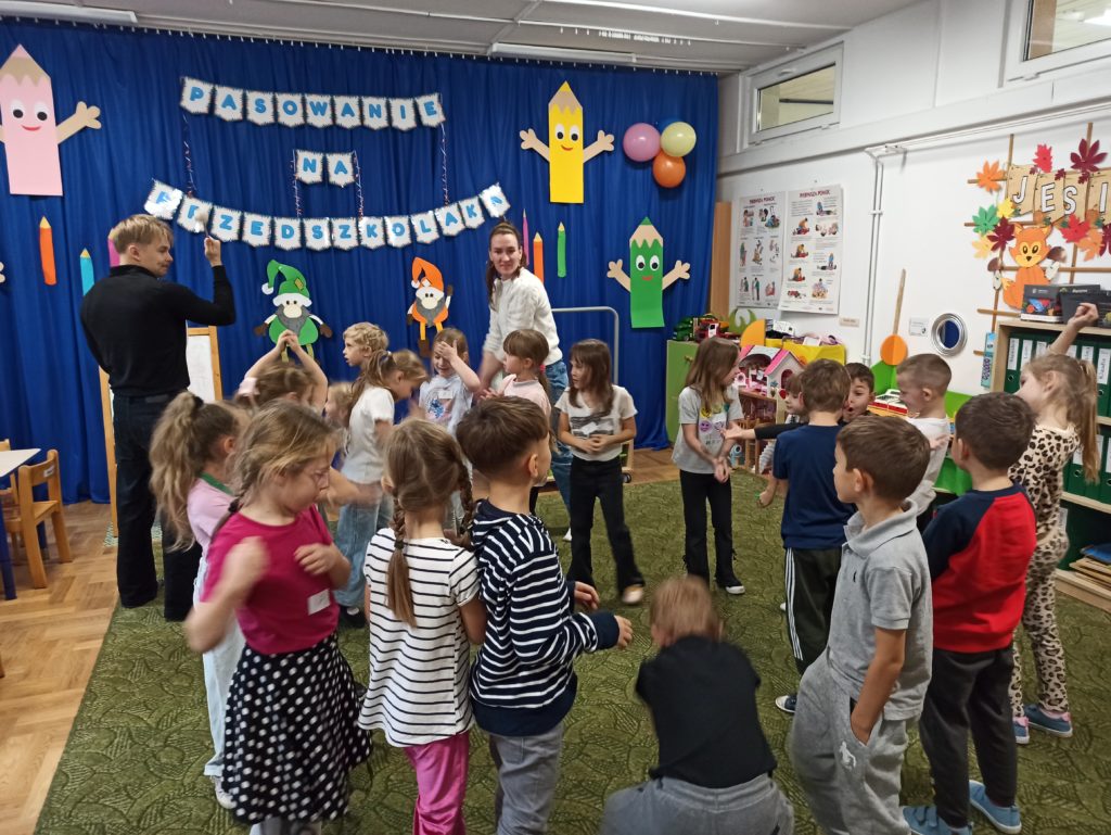 Od początku listopada dzieci z grupy „Zajączki” biorą udział w programie „Poruszające bajki o emocjach”. Jest to cykl 10 warsztatów o emocjach, począwszy od emocji podstawowych po emocje złożone, wtórne (społeczne). Zajęcia trwają od 45 do 60 minut dla grupy przedszkolnej. Każdorazowo prowadzone są przez dwie trenerki/dwóch trenerów na podstawie autorskich bajek i opracowanych scenariuszy zajęć. Dzieci zostają wciągnięte poprzez bajki w świat emocji, które uczą się rozpoznawać, a następnie jak sobie z nimi radzić.