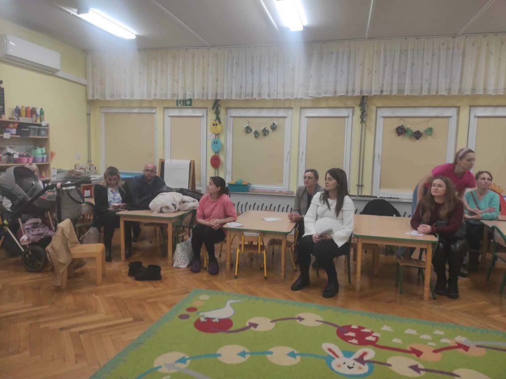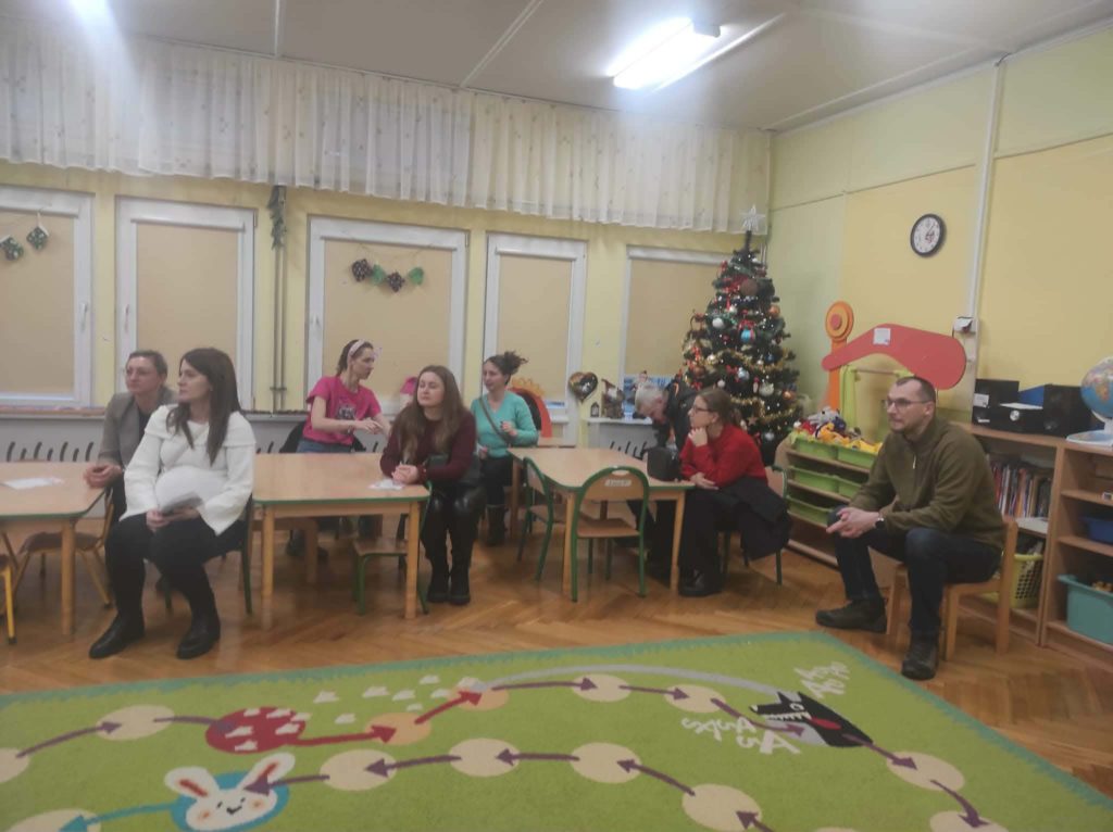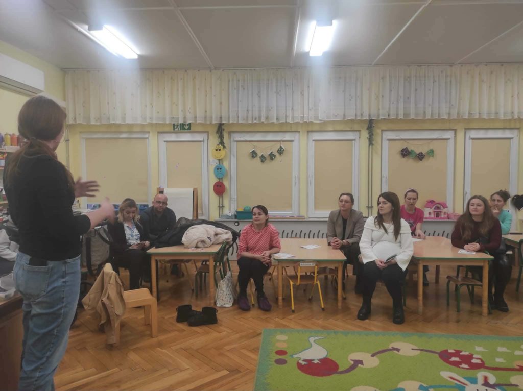 Podczas spotkania uczestnicy mieli okazję wysłuchać krótkiej prezentacji o znaczeniu bajkoterapii, a także wziąć udział w rozmowie o tym, jak wspierać dzieci w rozpoznawaniu emocji takich jak radość, złość, smutek czy strach. Rodzice otrzymali również broszury na temat rozwoju emocjonalnego najmłodszych.