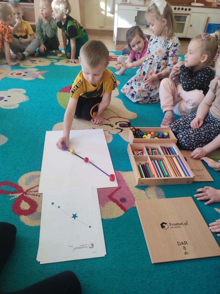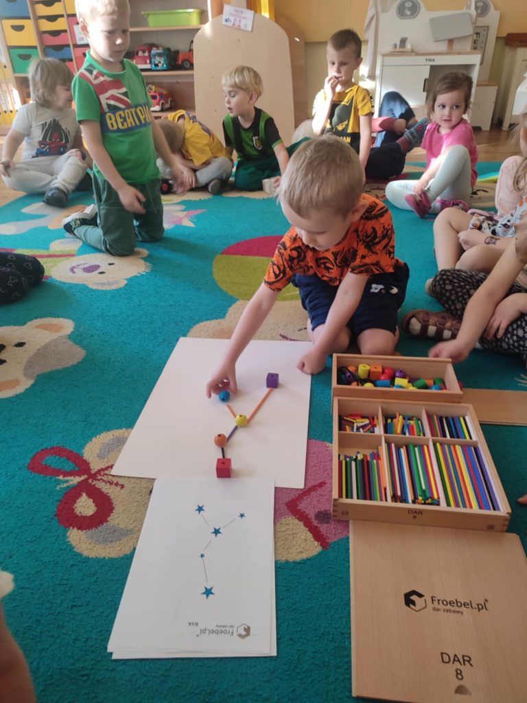 Dzieci z grupy ,,Misie” brały udział w ogólnopolskim projekcie edukacyjnym ,,Mali Polacy i Wielcy Rodacy”, który miał na celu rozwijanie patriotyzmu, poczucia dumy narodowej już od najmłodszych lat przybliżając dzieciom osiągnięcia zasłużonych Polaków ze świata nauki, kultury i sportu. Przedszkolaki angażowały się w kreatywne zabawy, twórcze zadania, doświadczenia i eksperymenty, wykonywały prace plastyczne, układały konstelacje gwiazd. Podczas realizacji zadań dzieci korzystały z Darów Froebela, które wspierają rozwój dziecka głównie przez zabawę, eksplorację oraz rozwijają zdolności poznawcze.