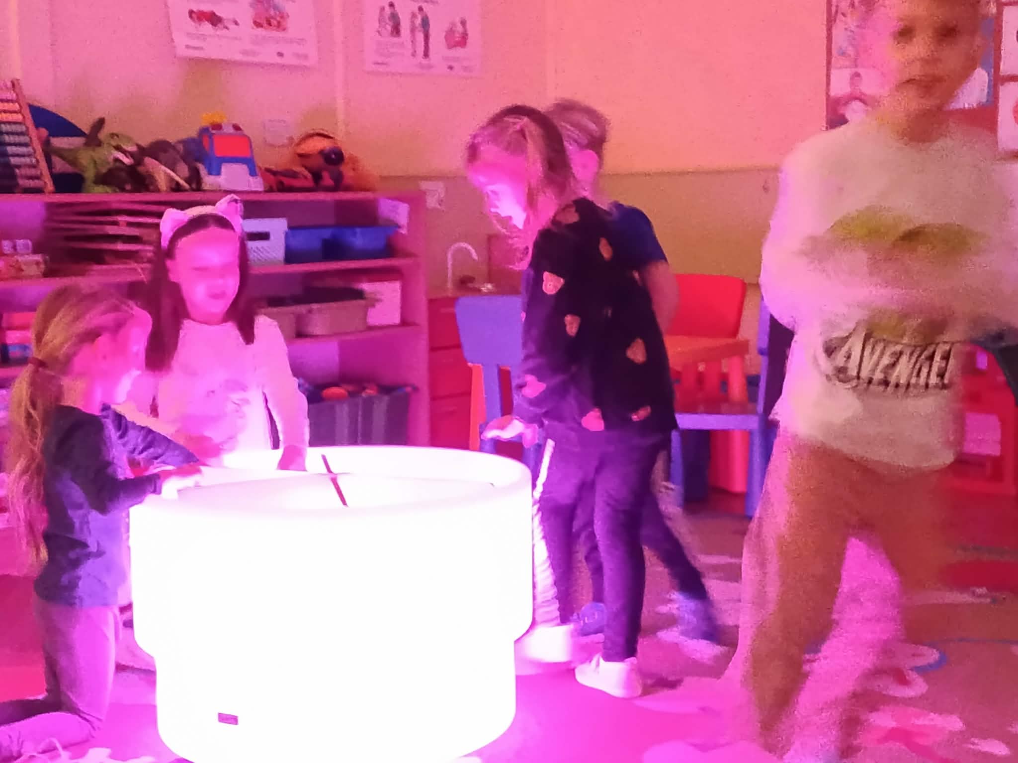 Przedszkolaki z grupy „Biedronki” korzystały w ostatnim czasie ze stolika sensorycznego. Stolik sensoryczny podświetlany to atrakcyjna forma zabawy i nauki, która wspiera rozwój zmysłów dzieci. Dzięki połączeniu światła, koloru i różnorodnych materiałów zajęcia pobudzają ciekawość oraz zachęcają do aktywnego odkrywania.