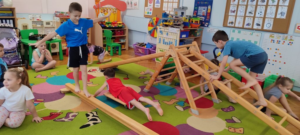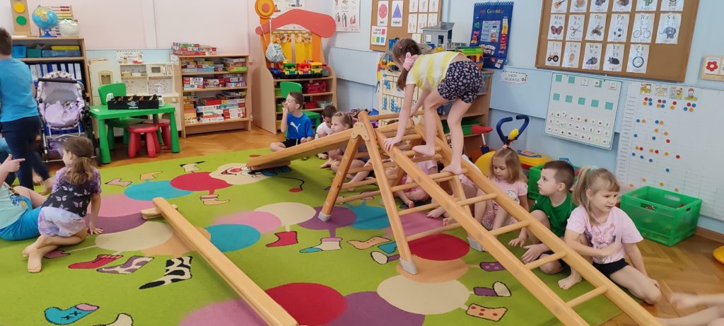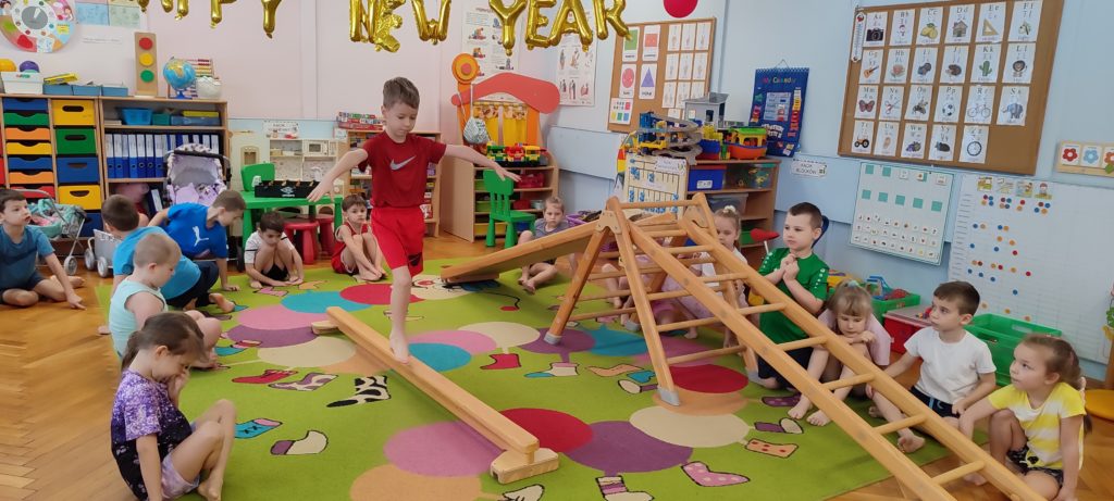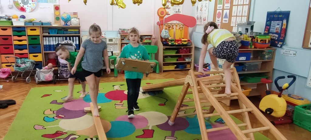 Dnia 14.01.2026 r. w grupie „Motylki” zostały przeprowadzone zajęcia z zakresu kształtowania postaw prozdrowotnych oraz wspierania aktywności fizycznej. Dzieci brały udział w różnorodnych ćwiczeniach ruchowych z wykorzystaniem drabinek, rowerka, zjeżdżalni, równoważni oraz deskorolki. Aktywności te sprzyjały rozwijaniu sprawności fizycznej, koordynacji ruchowej, równowagi, wzmacnianiu mięśni oraz kształtowaniu prawidłowej postawy. Zrealizowane zostały zajęcia muzyczno-ruchowe z woreczkami i ćwiczenia gimnastyczne. Dzieci ćwiczyły umiejętność bezpiecznego korzystania ze sprzętu oraz współpracy w grupie. Zajęcia miały formę zabawy i wywoływały wiele radości oraz pozytywnych emocji.