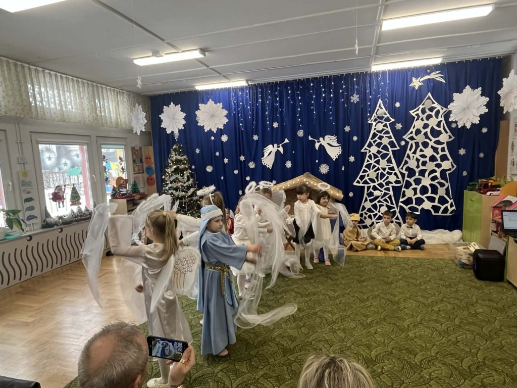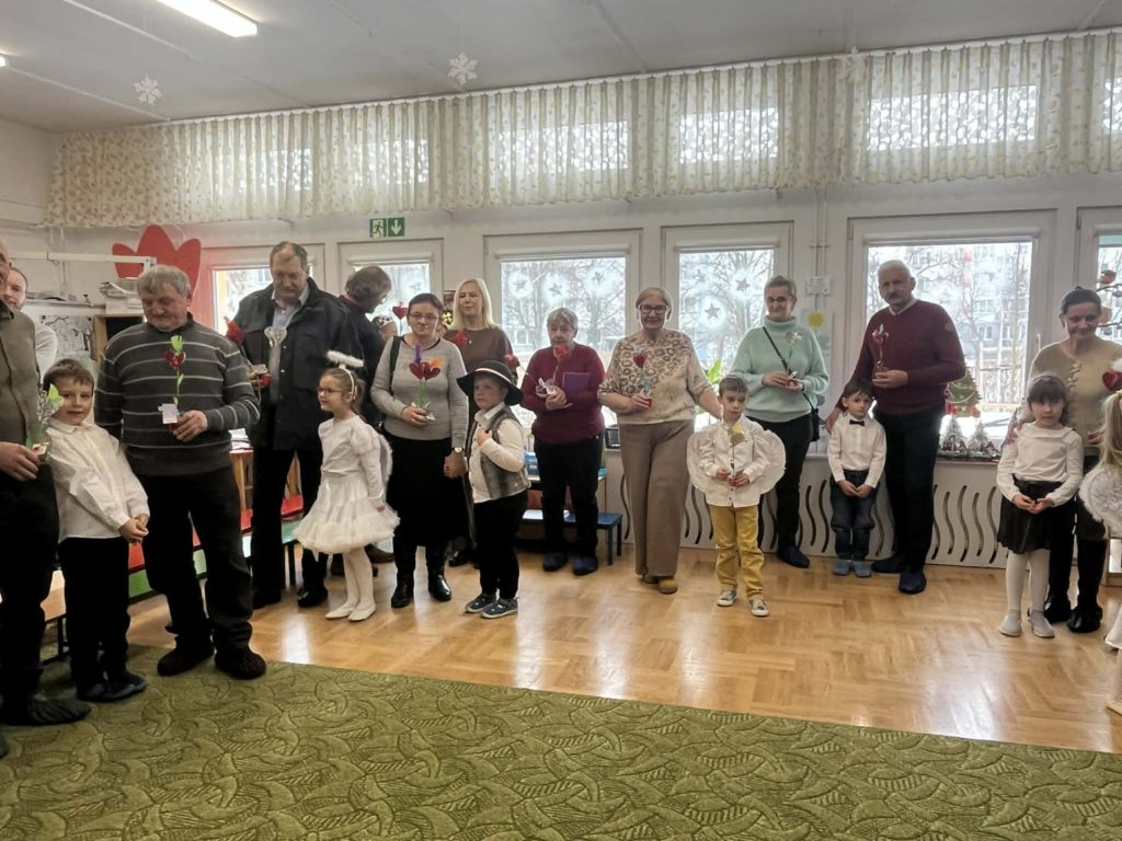 Z okazji Dnia Babci i Dziadzia dzieci z grupy „Motylki” z radością zaprezentowały przygotowany występ. Dnia 22.01.2026r ,,Mali artyści’’ z ogromnym zaangażowaniem wcielili się w swoje role, śpiewali kolędy, piosenki, recytowali wierszyki, wywołując uśmiech oraz wzruszenie na twarzach zaproszonych gości. Każde słowo, każdy uśmiech sprawiły, że na twarzach Babć i Dziadziów pojawiły się łzy wzruszenia i duma. Dzieci razem  z dziadziami i babciami zatańczyły wspólny taniec, który dostarczył wielu niezwykłych chwil i stał się pięknym symbolem międzypokoleniowej bliskości. Na zakończenie uroczystości dzieci wręczyły swoim Kochanym Babciom i Dziadziom kwiatki, które samodzielnie przygotowały wraz z dedykacją; ,,Kochanej Babci, kochanemu Dziadziowi”. Był to wyjątkowy moment pełen ciepła, radości i rodzinnej atmosfery.  Dziękujemy wszystkim za obecność i wspólne świętowanie tego pięknego dnia!  Życzymy dużo, zdrowia, uśmiechu, samych pogodnych dni oraz spełniania pasji.