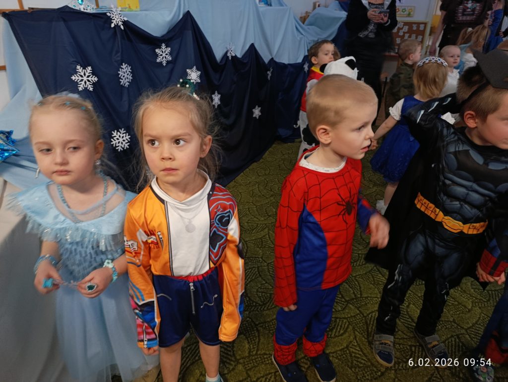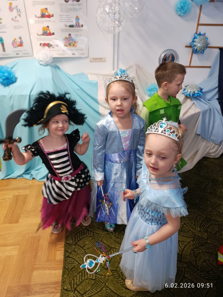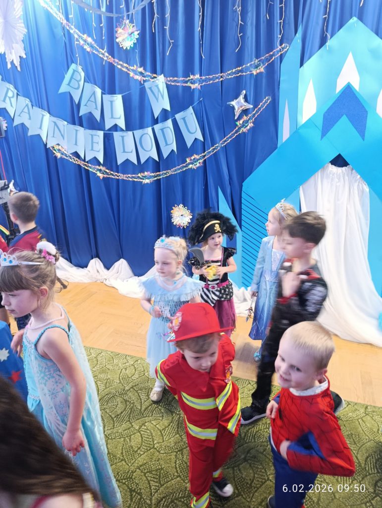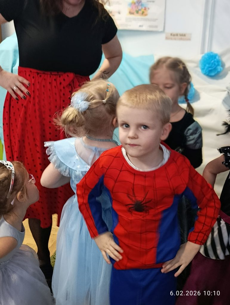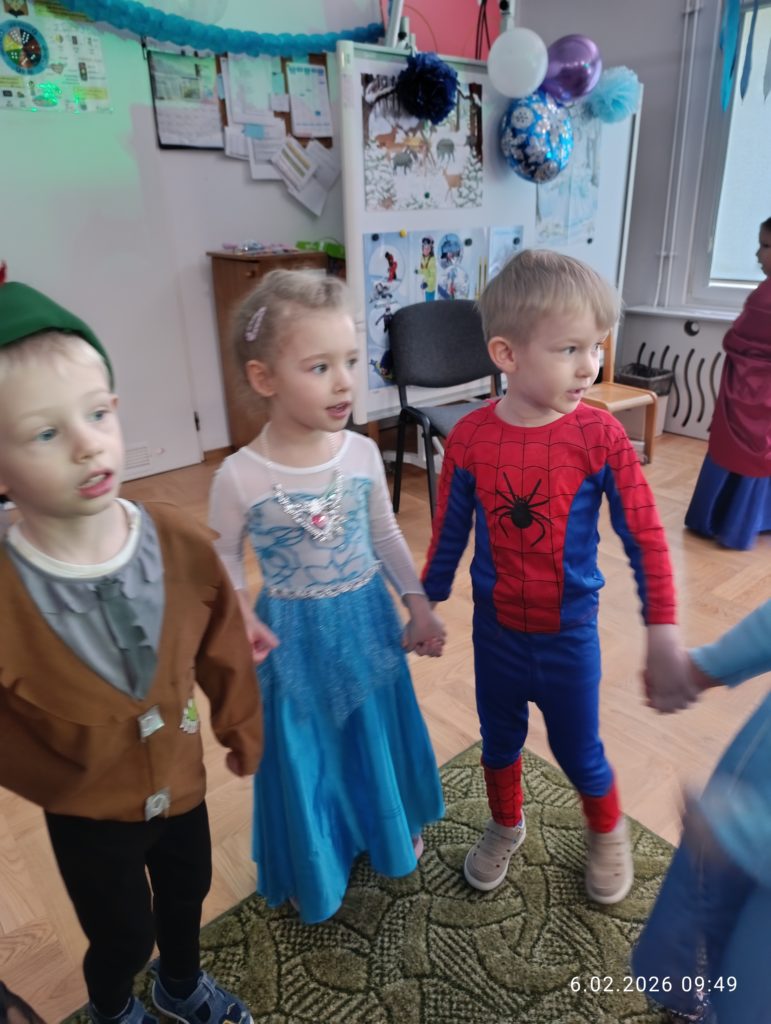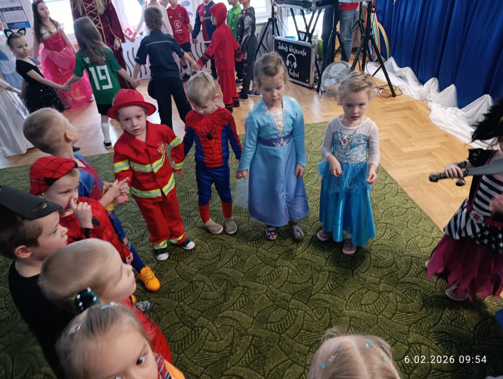 Dnia 06.02.2026 r. całe przedszkole wzięło udział w balu karnawałowym, również dzieci z naszej grupy „Misie”. Dzieci wcieliły się w różne postacie bajkowe. Zamieniły się w m.in. w królewny, księżniczki, spidermanów, piratów, strażaków. Przedszkolacy świetnie bawili się, uczestnicząc we wspólnych zabawach oraz konkursach, a skoczna i rytmiczna muzyka zachęcała do tańca. Wszystkim zabawom towarzyszył śmiech, radość i spontaniczna aktywność dzieci. Cały bal karnawałowy przebiegał w miłej, serdecznej atmosferze i dostarczył niezapomnianych wrażeń.
