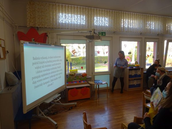 - Prelekcje dla rodziców dotyczące wpływu czytelnictwa na rozwój dzieci w formie prezentacji multimedialnej, która została też udostępniona rodzicom na grupowych skrzynkach e-mail,
