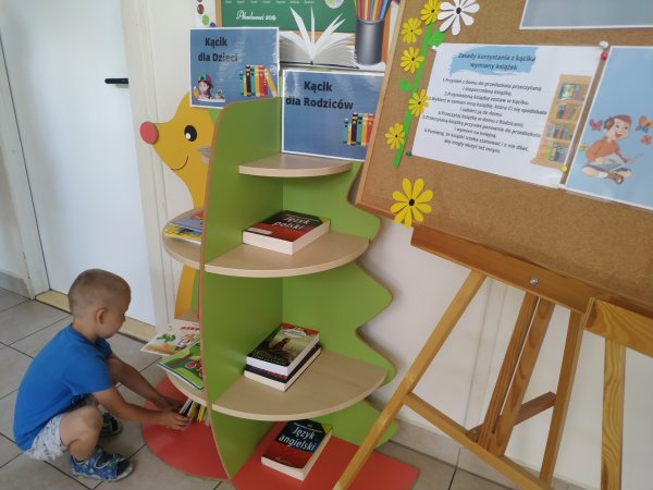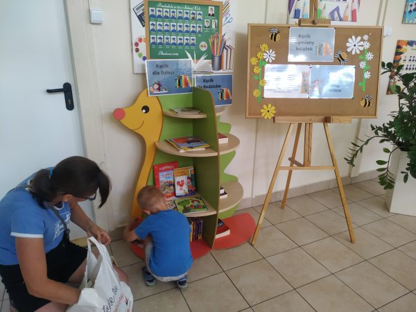- Kącik wymiany książek – półka bookcrossingowa,