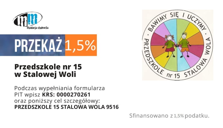 Bardzo prosimy, by w rozliczeniu za rok 2025 także pamiętać o Przedszkolu nr 15 w Stalowej Woli!